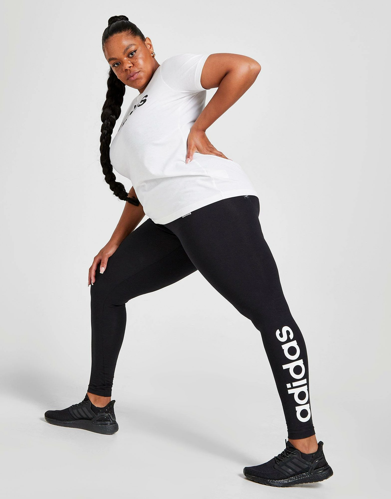 From the sofa to the gym, these women’s Core Linear Logo Plus Size Leggings from adidas cover every plan. In a black colourway, these tight-fit leggings are made from smooth cotton fabric with added stretch for essential comfort. Featuring a high-rise waistband and a full-leg length, they’re signed off with a Badge Of Sport to the hip and adi branding to the left calf. Machine washable. | Our model is 5’9″ and wears a size XL.