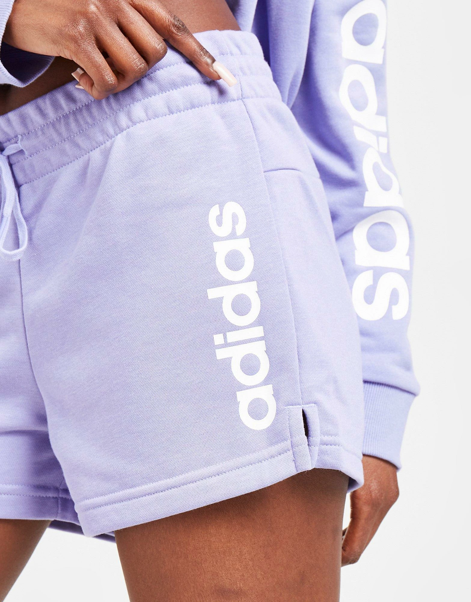 Stock up on chill day staples with these women’s Core Linear Logo Shorts from adidas. In a Lilac colourway, these shorts are made from light, fleecey fabric that partially includes recycled polyester. They feature an elasticated waistband and adjustable drawcord for a relaxed, customisable fit, with side pockets for your everyday essentials. Finished up with adidas branding to the leg. Machine washable | Our model wears a size small.