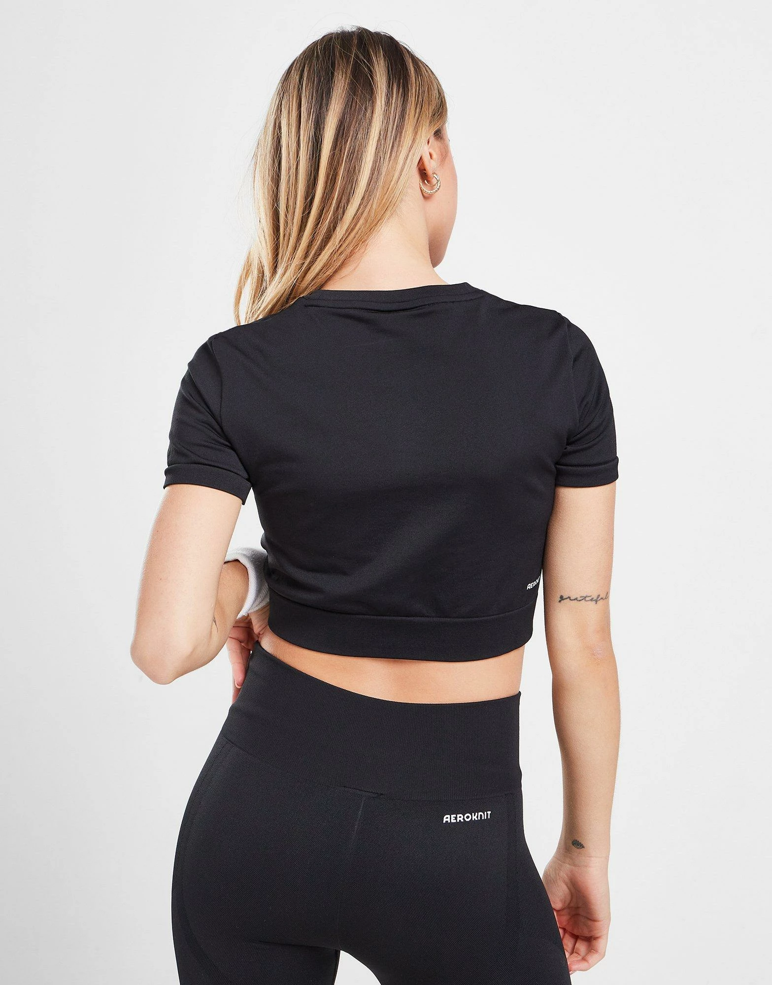 Freshen up your gym-ready rotation with this women’s Core Seamless Short Sleeve T-Shirt from adidas. In a Black colourway, this tee is made from smooth, breathable semi-recycled AEROKNIT fabric for cool comfort as you train, with AEROREADY sweat-wicking tech to keep you dry and fresh. It has a ribbed crew neckline and short sleeves, with a cropped hem for a relaxed wear. Finished up with an adidas Badge of Sport to the chest. Machine washable | Our model is 5’7″ and wears a size small.