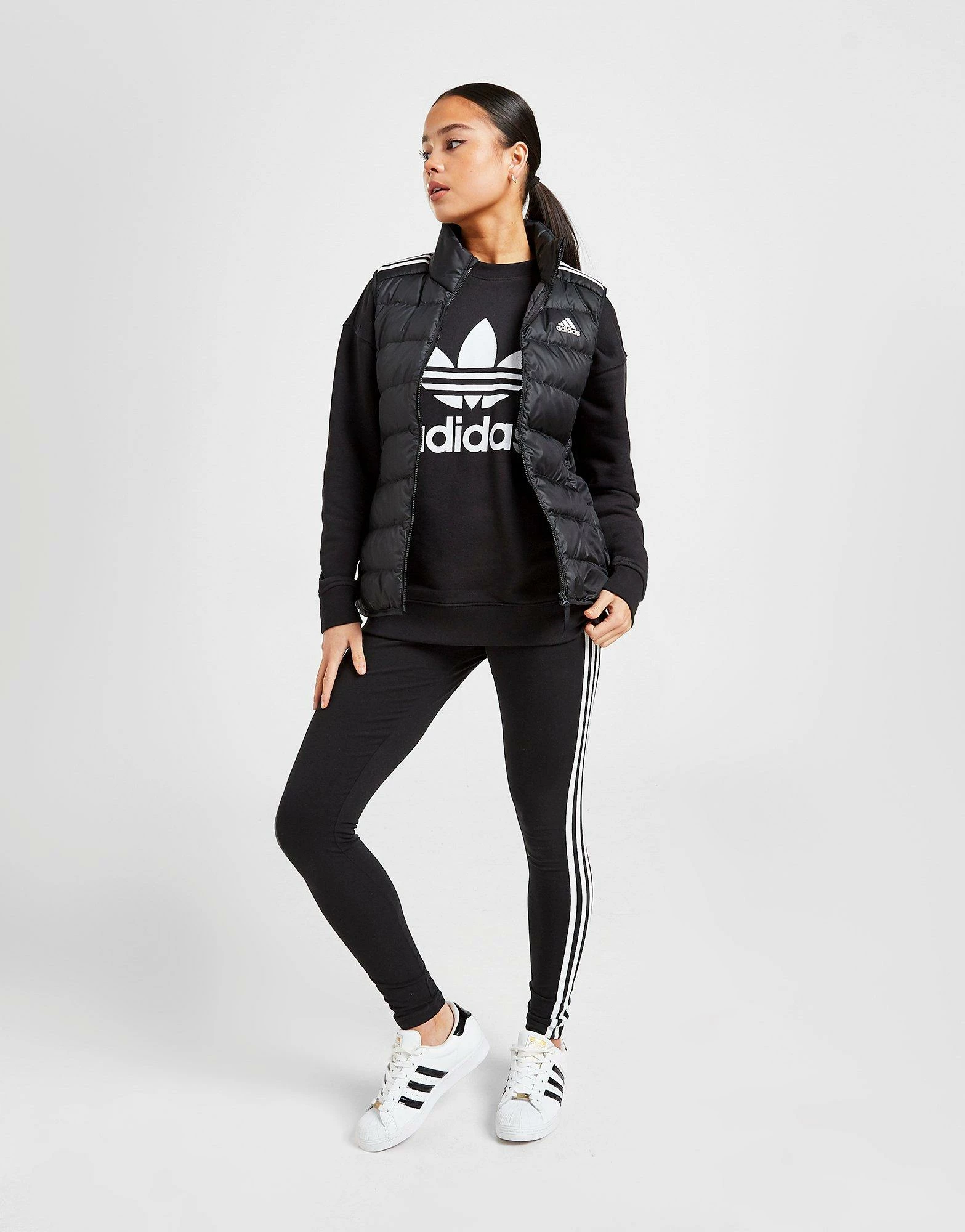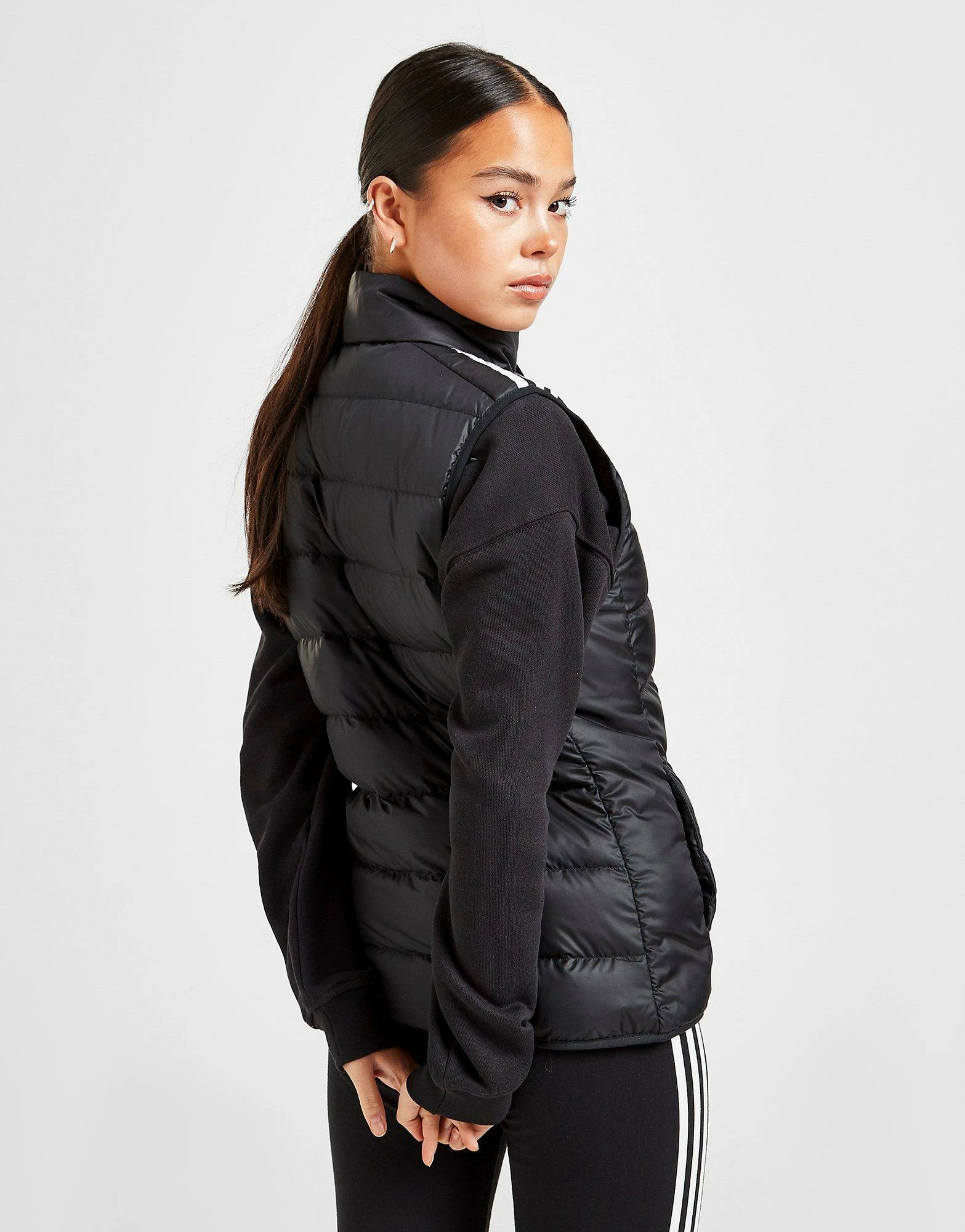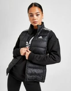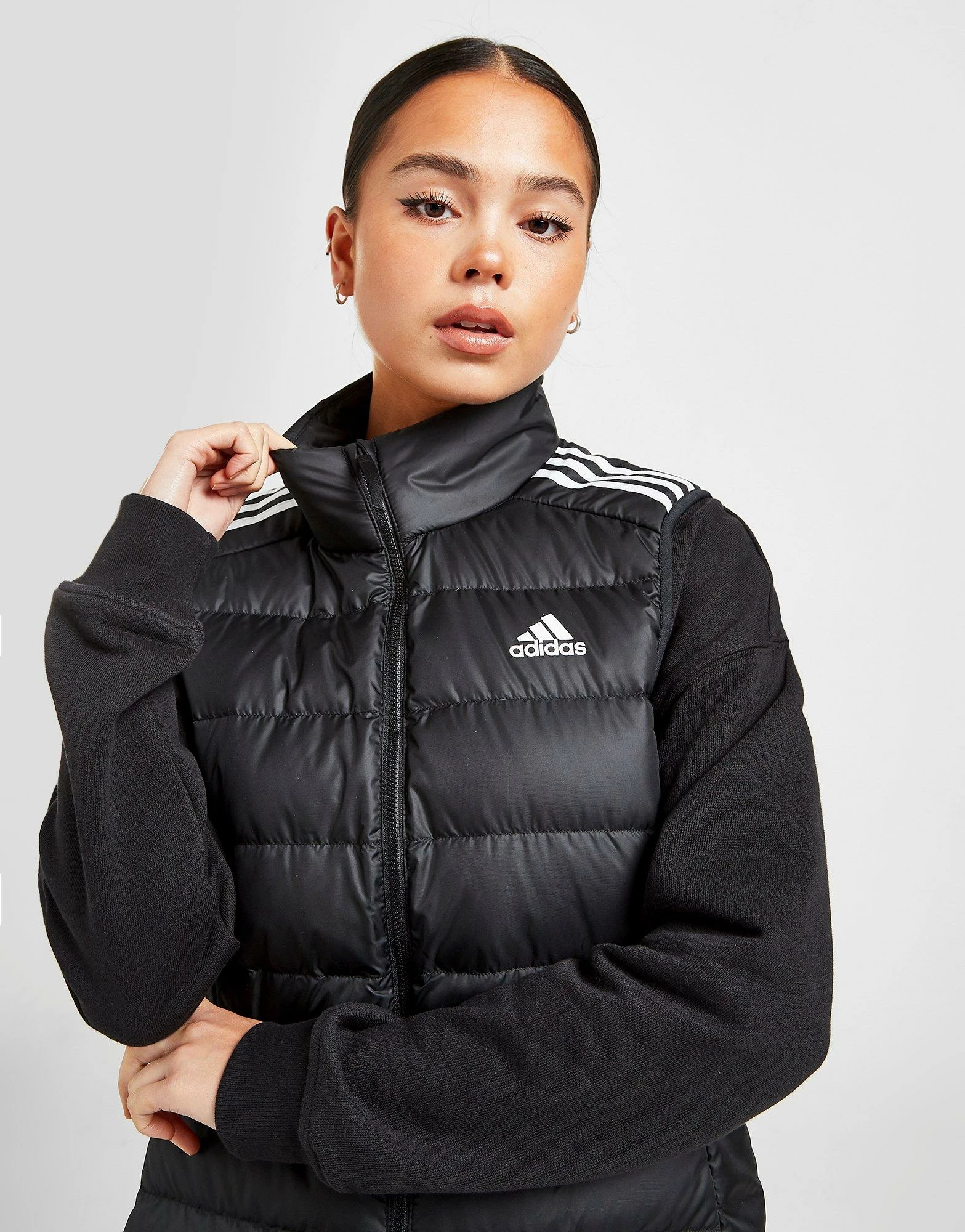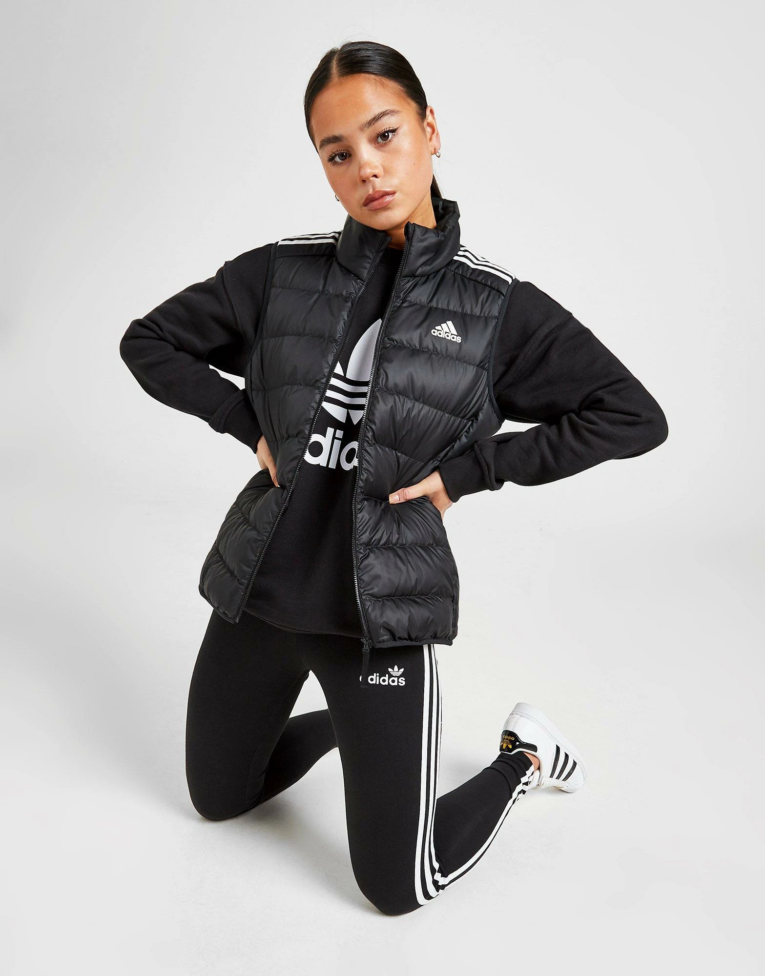 Layer up for the colder days and nights in this women’s Essential Down Gilet from adidas. In a black colourway, this regular-fit vest is made from weather-proof poly fabric with down fill for lightweight warmth and a cosy feel. It features a full zip fastening, risen collar and is sleeveless. With adidas’ legendary 3-Stripes in contrasting white to the shoulders, this gilet is finished with the Badge of Sport logo to the chest. | Our model is 5’6″ and wears a size small.