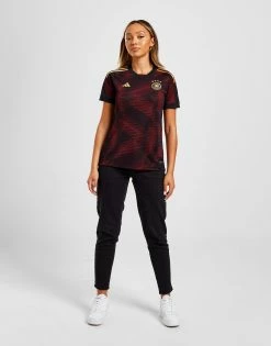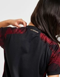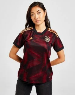 THIS ITEM IS AVAILABLE FOR PRE ORDER WITH AN EXPECTED RELEASE DATE OF 12th SEPTEMBER. Level up your support this season with this women’s Germany 2022 Away Shirt from adidas. In a Black colourway, this slim-build shirt reflects the current squad’s dynamic football with a blurred D for ‘Deutschland’ graphic. It’s made from recycled poly fabric for a super smooth feel, while mesh inserts and sweat-wicking AEROREADY tech provide cool and dry comfort. Cut with a V-neckline, short sleeves and ribbed trims, this shirt is finished off with signature adidas branding and the iconic Germany crest embroidered to the chest. Machine washable.