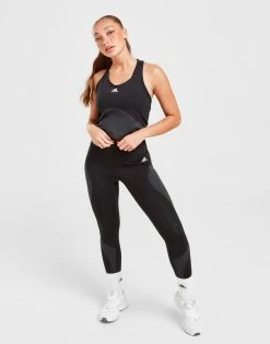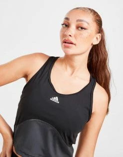 Bring the heat to every training session with this women’s HIIT Colour Block Tank Top from adidas. In a Black and Grey colourway, this slim-build top has a cropped hem, a drop neckline and racerback design for unrestricted movement. Made from smooth, stretchy poly fabric, this vest uses sweat-wicking AEROREADY tech to keep you cool and in control. It’s finished up with a contrasting Badge of Sport to the chest. Machine washable. | Our model is 5’6.5″ and wears a size small.