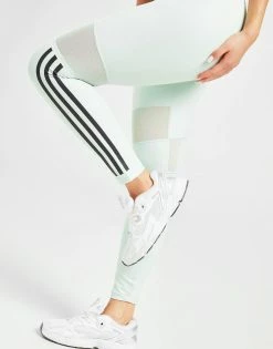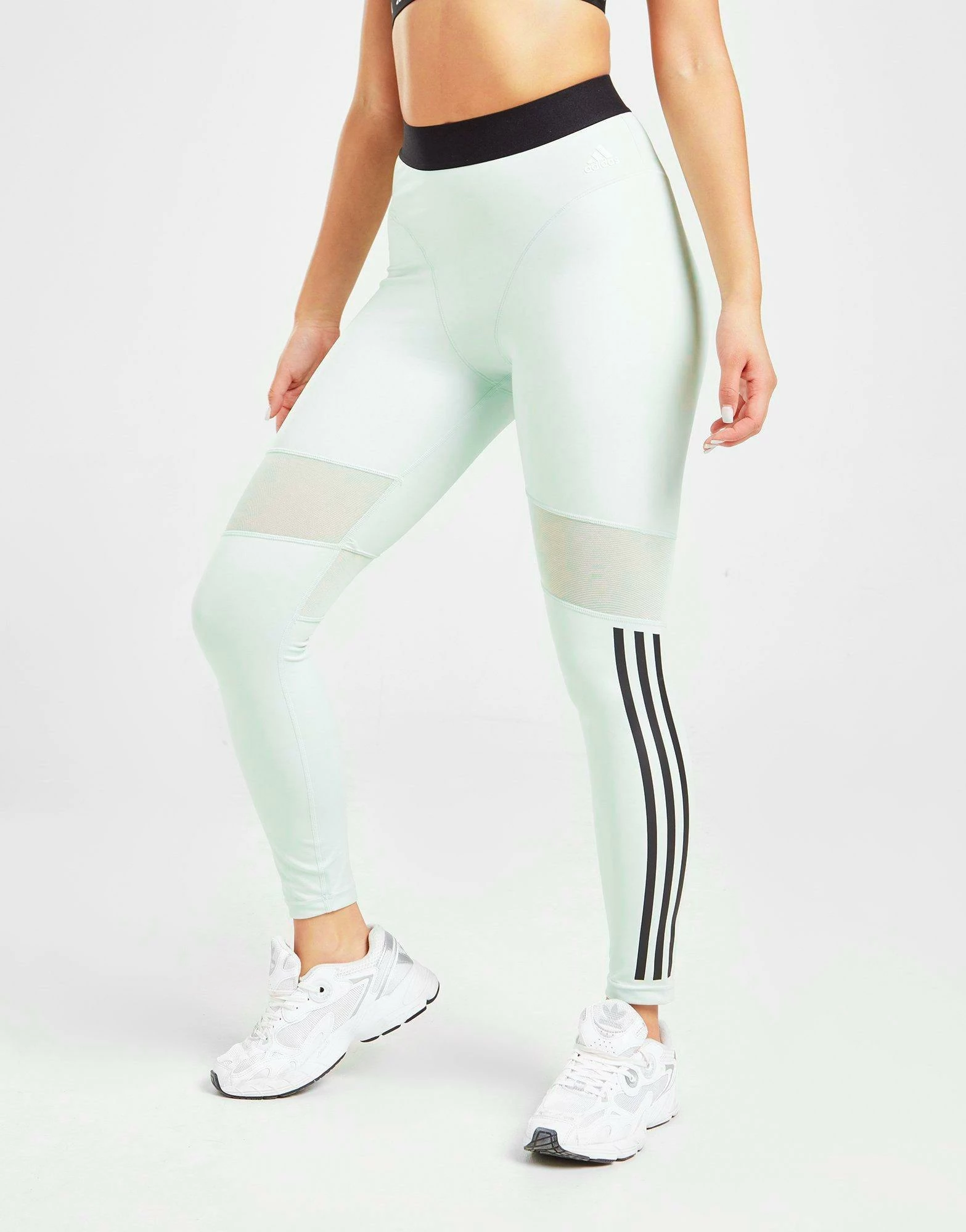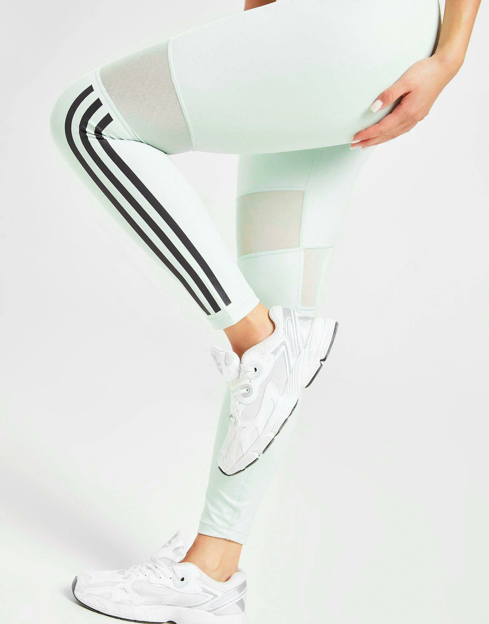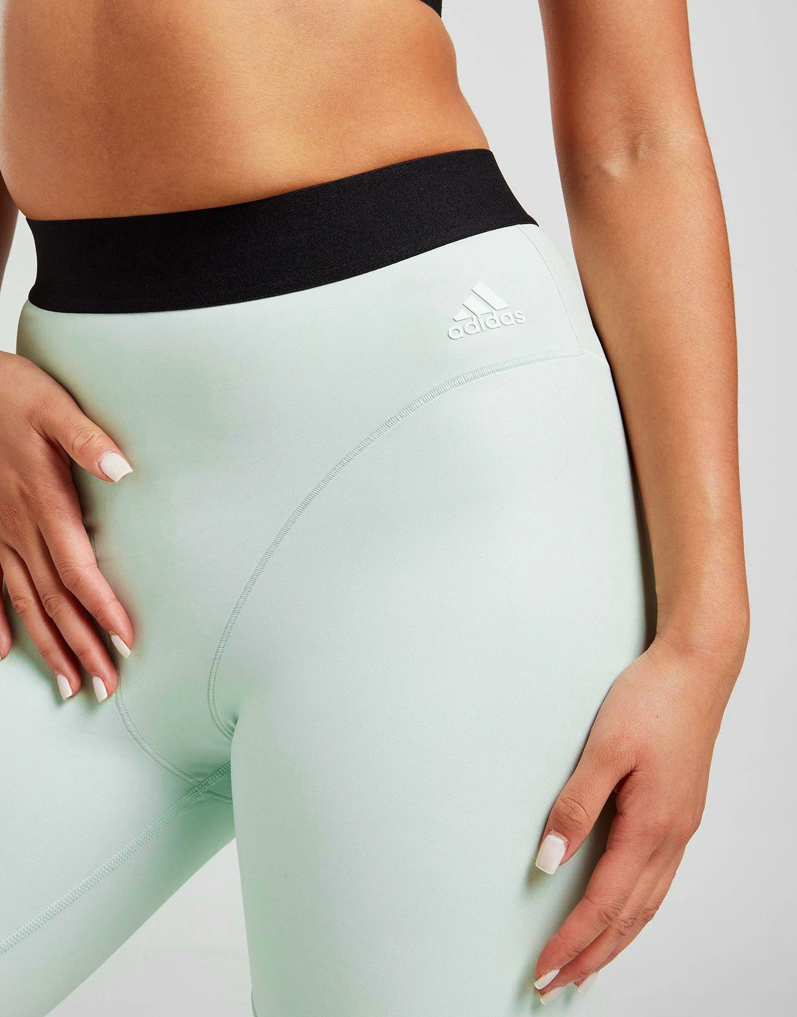 Freshen up your fitness essentials with these women’s Hyperglam 3-Stripes Tights from adidas. Landing in a Sage colourway, these tights are cut from smooth, stretchy recycled poly with a shiny finish for essential comfort. They fit tight, with sweat-wicking AEROREADY tech built-in for cool wear. They have a woven, high-rise elasticated waistband for a secure fit and exposed stitch detailing, with 7/8-length legs to keep you covered. Finished up with adidas’ iconic 3-Stripes at the calved and the iconic Badge of Sport logo at the hip. Machine washable. | Our model is 5’8″ and wears a size small.