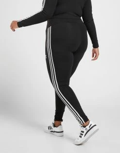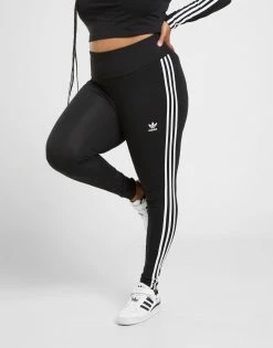 Level up your everyday essentials with these women’s Plus Size 3-Stripes Leggings from adidas Originals. Landing in a Black colourway, these tight-fit leggings are made with super-soft stretch cotton for supreme comfort. They have a high-rise elasticated waistband for a secure feel, and full-length legs for complete coverage. Finished up with contrasting 3-Stripes down the legs, and signature Trefoil branding to the thigh. Machine washable. | Our model is 5’9″ and wears a size XL.