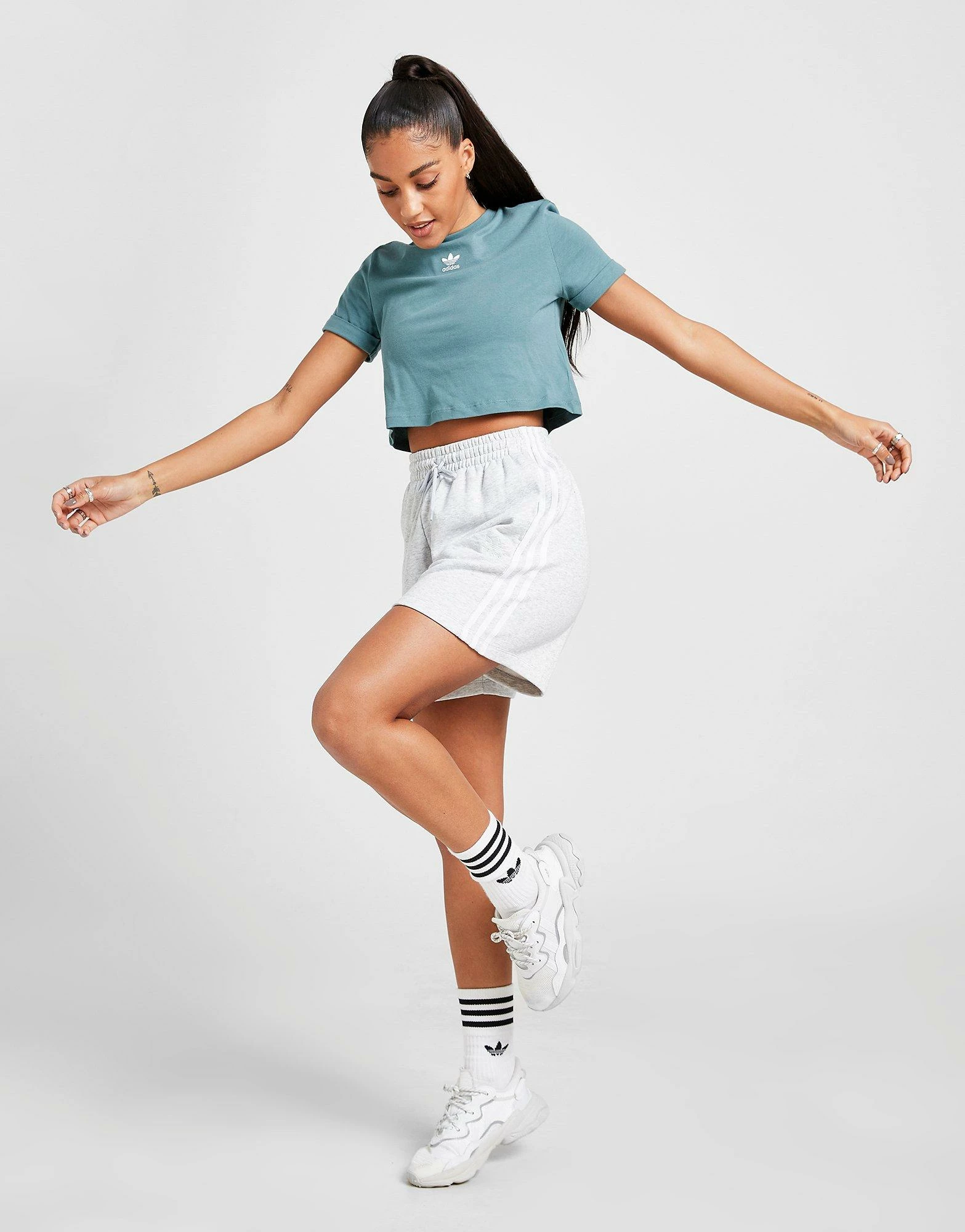 Add exclusive style and comfort to your off-duty ‘fit with these women’s 3-Stripes Essential Boyfriend Shorts from adidas Originals. In a Grey Marl colourway, these oversized shorts are cut from a soft cotton fleece blend for a premium feel. They feature side pockets and an elasticated waistband with adjustable drawcords for a custom fit. These go-to sweats are signed off with White 3-Stripes to the sides and an embroidered Trefoil logo to the thigh. Machine washable. | Our model is 5’7″ and wears a size 8.