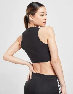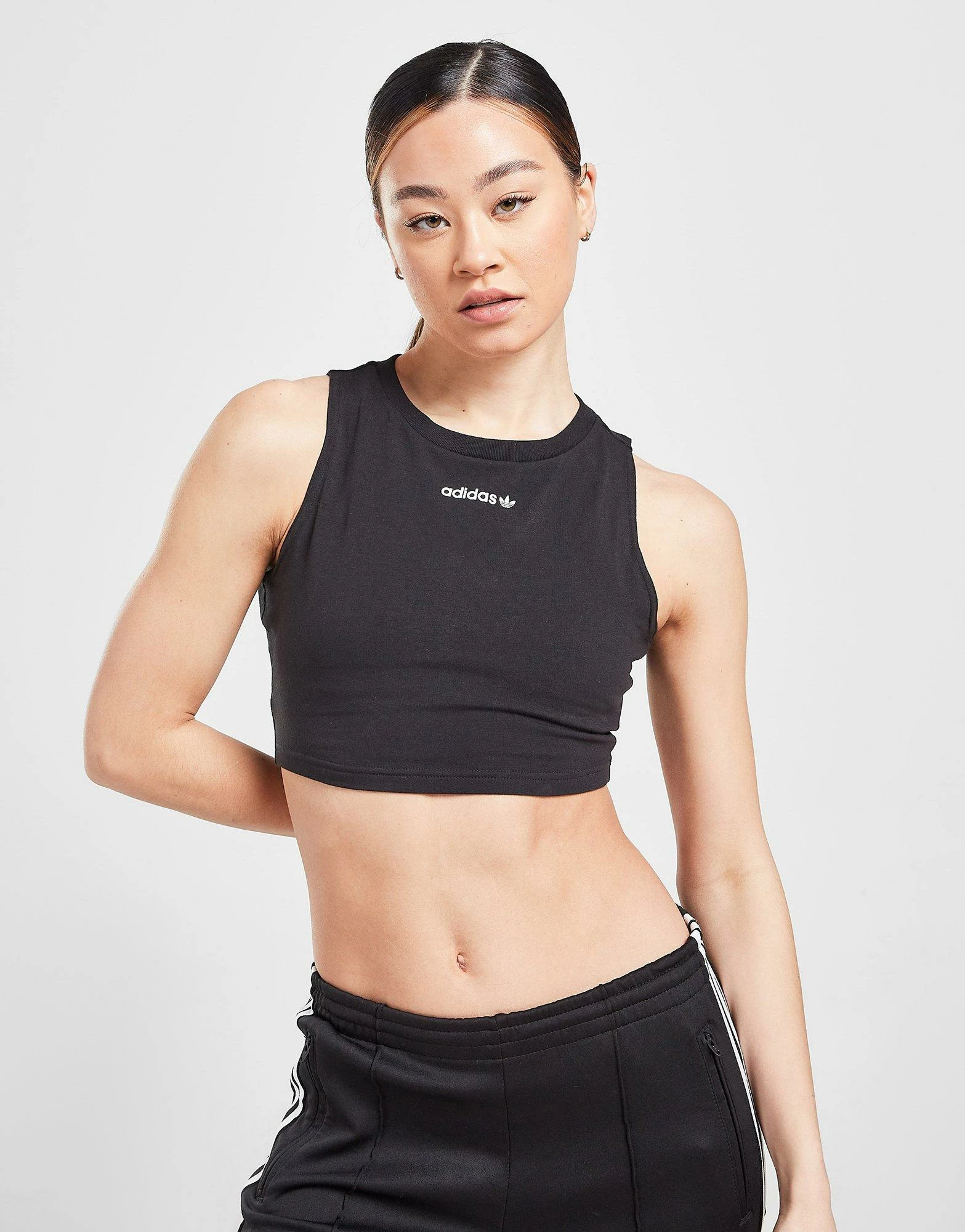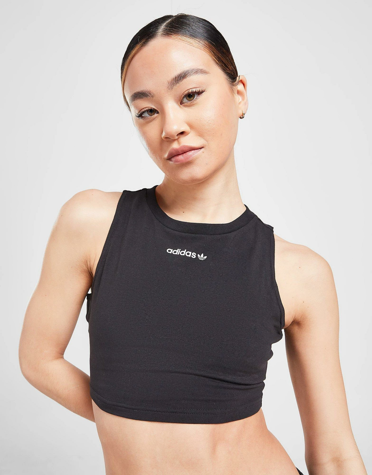 Elevate your staple wear with this women’s 3-Stripes Linear Tank Top from adidas Originals’. Exclusive, this slim fit top is made from a soft and stretchy cotton fabric to give you lightweight comfort whenever you pull it on. It lands in a Black colourway and features a ribbed crew neckline with a cropped hem for a laidback look. Signed off with adidas Originals’ branding to the chest. Machine washable. | Our model is 5’10” and wears a size small.