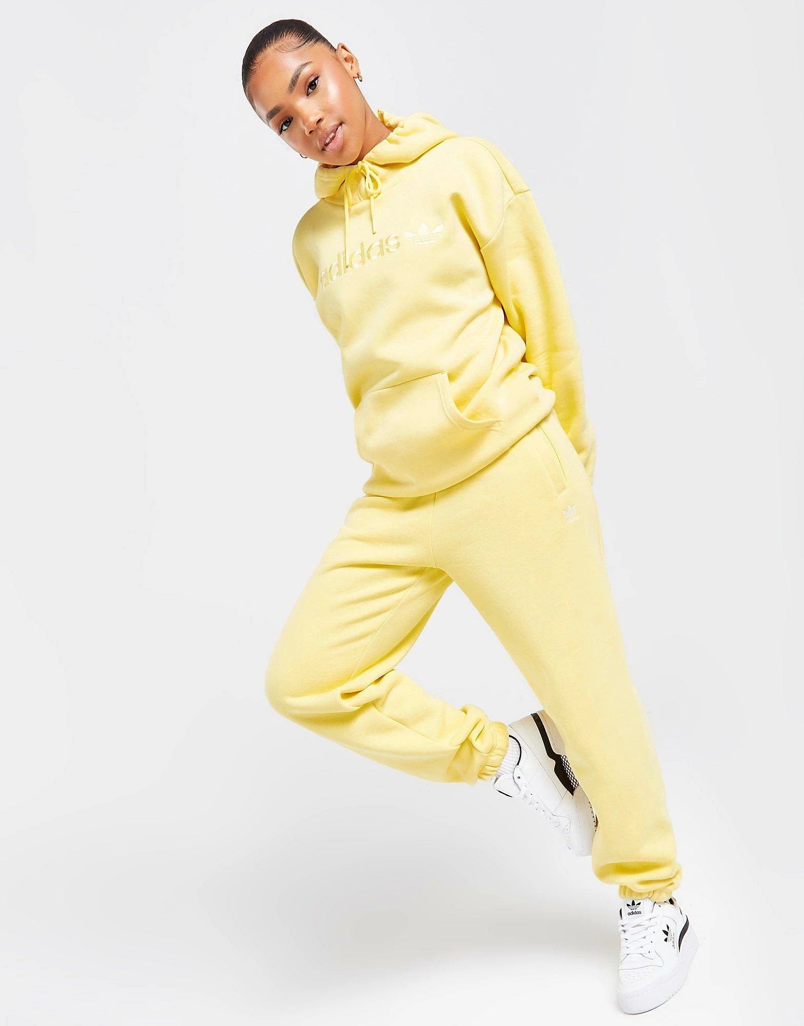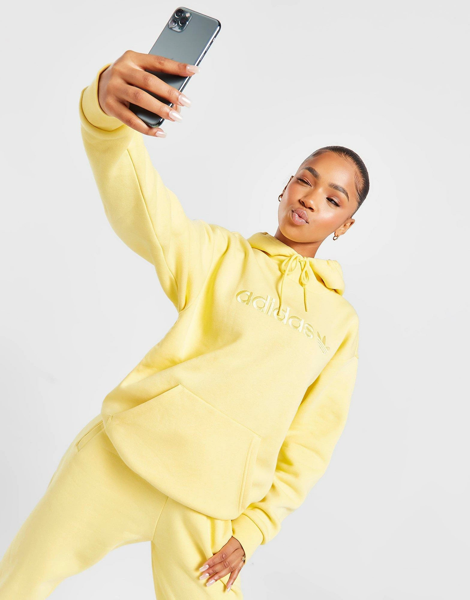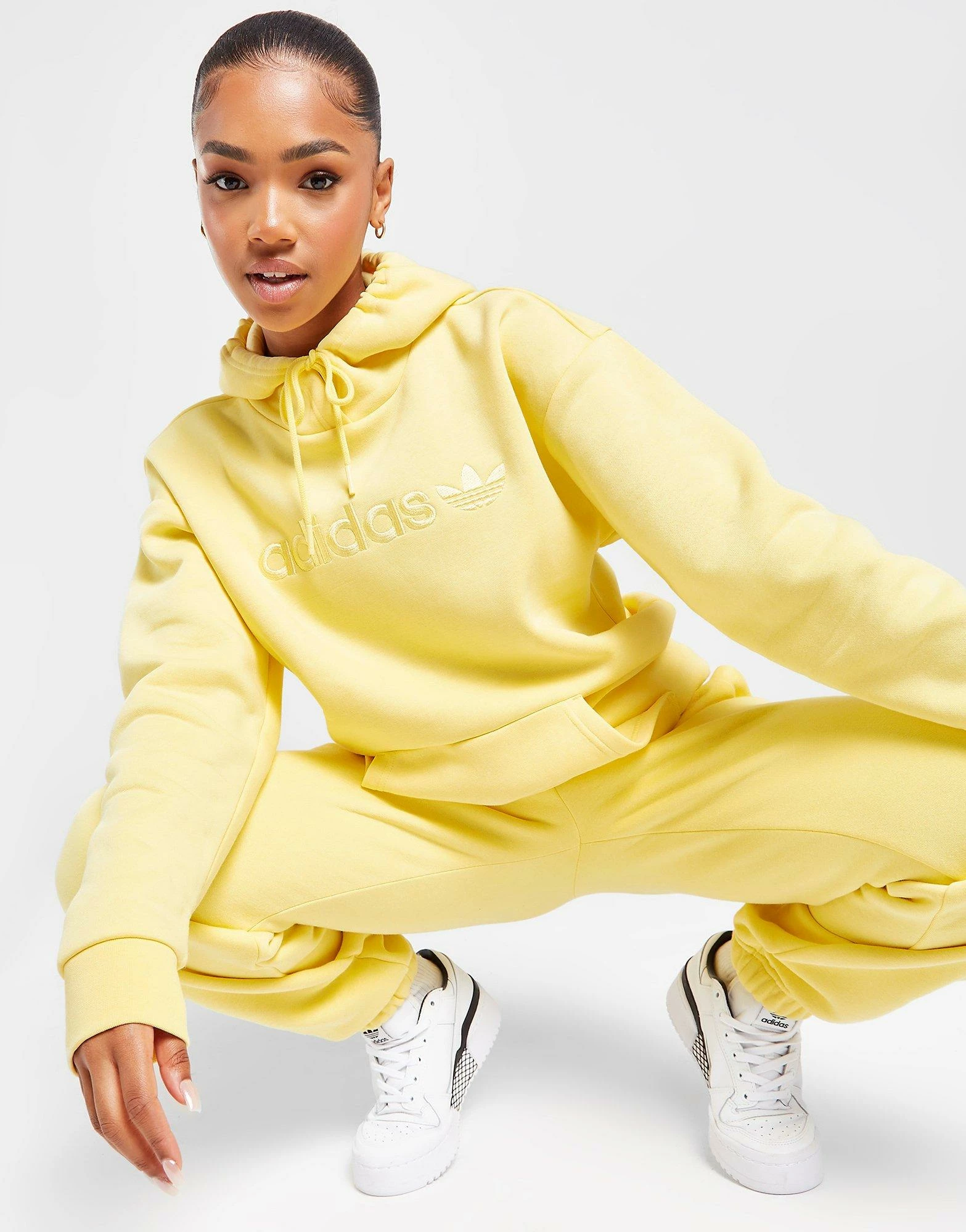 Add some comf’ to your rotation with this women’s Embroidered Overhead Hoodie from adidas Originals. In an Almost Yellow colourway, this exclusive hoodie is cut from soft, fleecey fabric that partly includes recycled polyester. It has an adjustable hood for custom coverage, with ribbed trims to secure the fit and a kangaroo pouch for your essentials. Finished up with signature Trefoil branding to the chest. Machine washable | Our model is 5’7″ and wears a size 8.