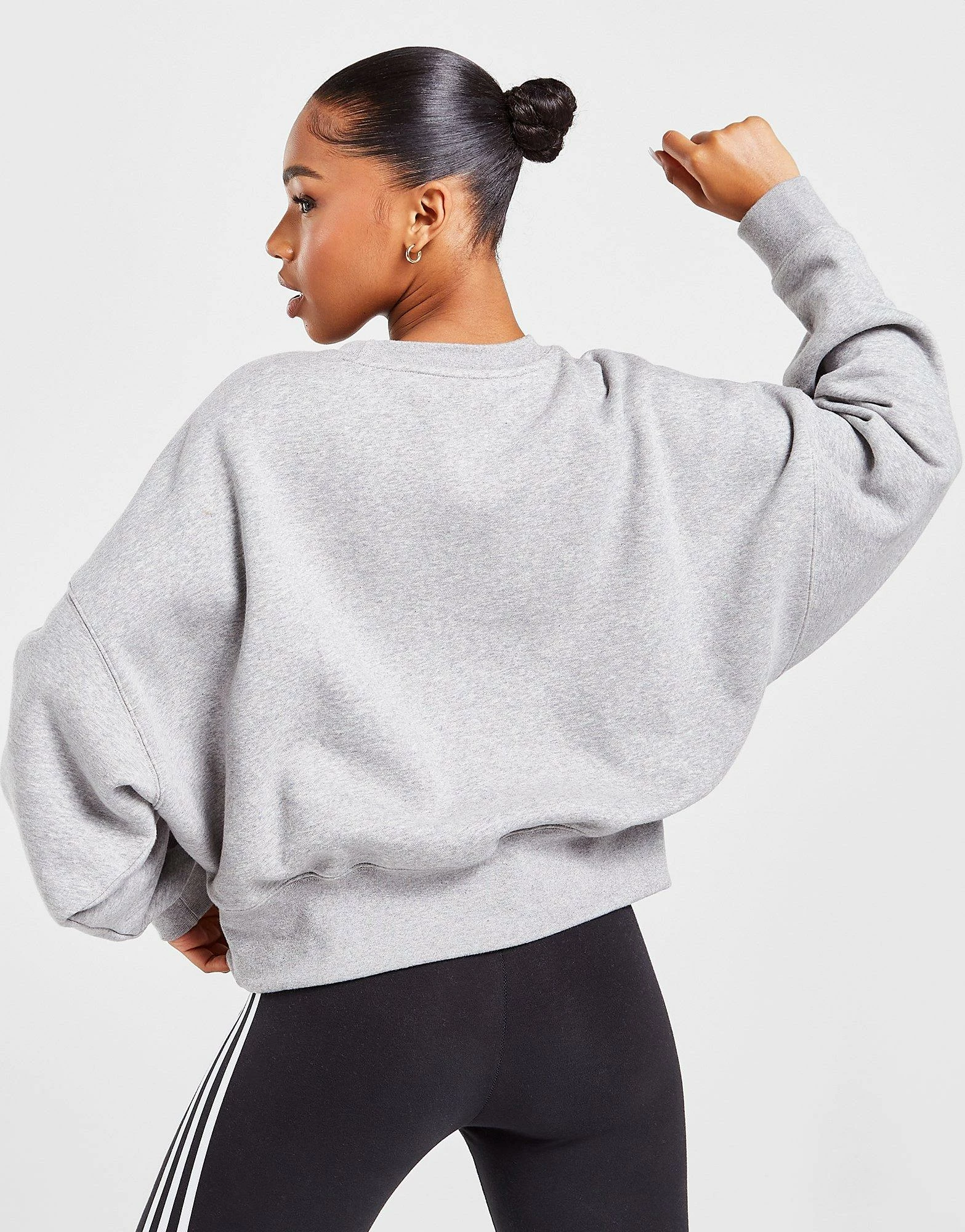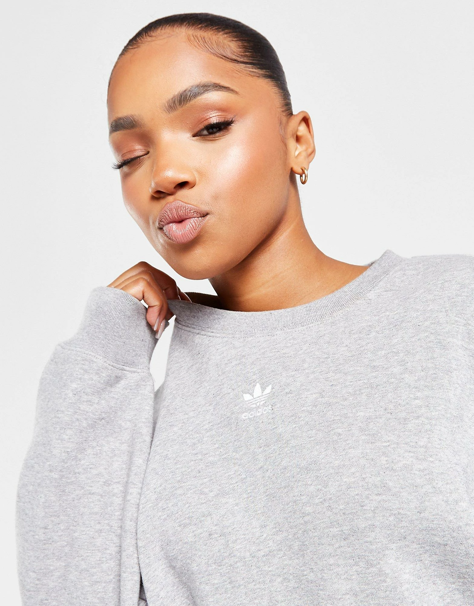 Call in the cosy vibes with this women’s Essential Fleece Crew Sweatshirt from adidas Originals. In a Medium Grey Heather colourway, this sweatshirt is made from super-soft, fleecey French terry with partially recycled polyester fabric. Comin’ in a baggy, oversized fit, it features long sleeves and ribbed trims to keep it in place and is finished up with the iconic Trefoil logo to the chest. Machine washable | Our model is 5’7.5″ and wears a size 8.