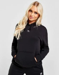 Layer up and rep the Trefoil with this women’s Essential Fleece Overhead Hoodie from adidas Originals. In a Black colourway, this hoodie is made from light, fleecey semi-recycled poly fabric for cosy comfort. In a classic pullover design, it features an adjustable hood for custom coverage, with ribbed trims for a snug, secure fit and a kangaroo pouch for your essentials. Finished up with the iconic Trefoil logo to the chest. Machine washable | Our model is 5’7″ and wears a size small.