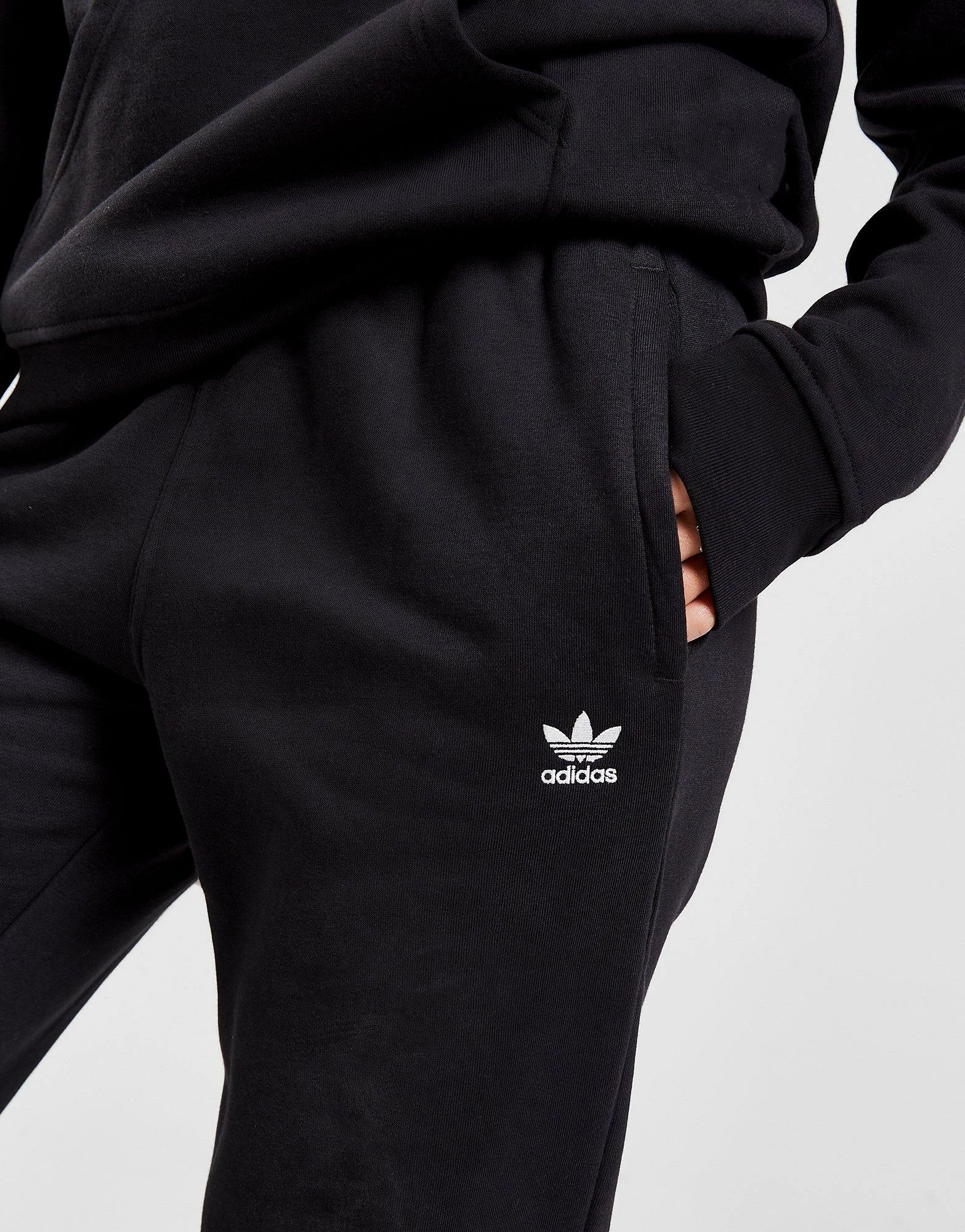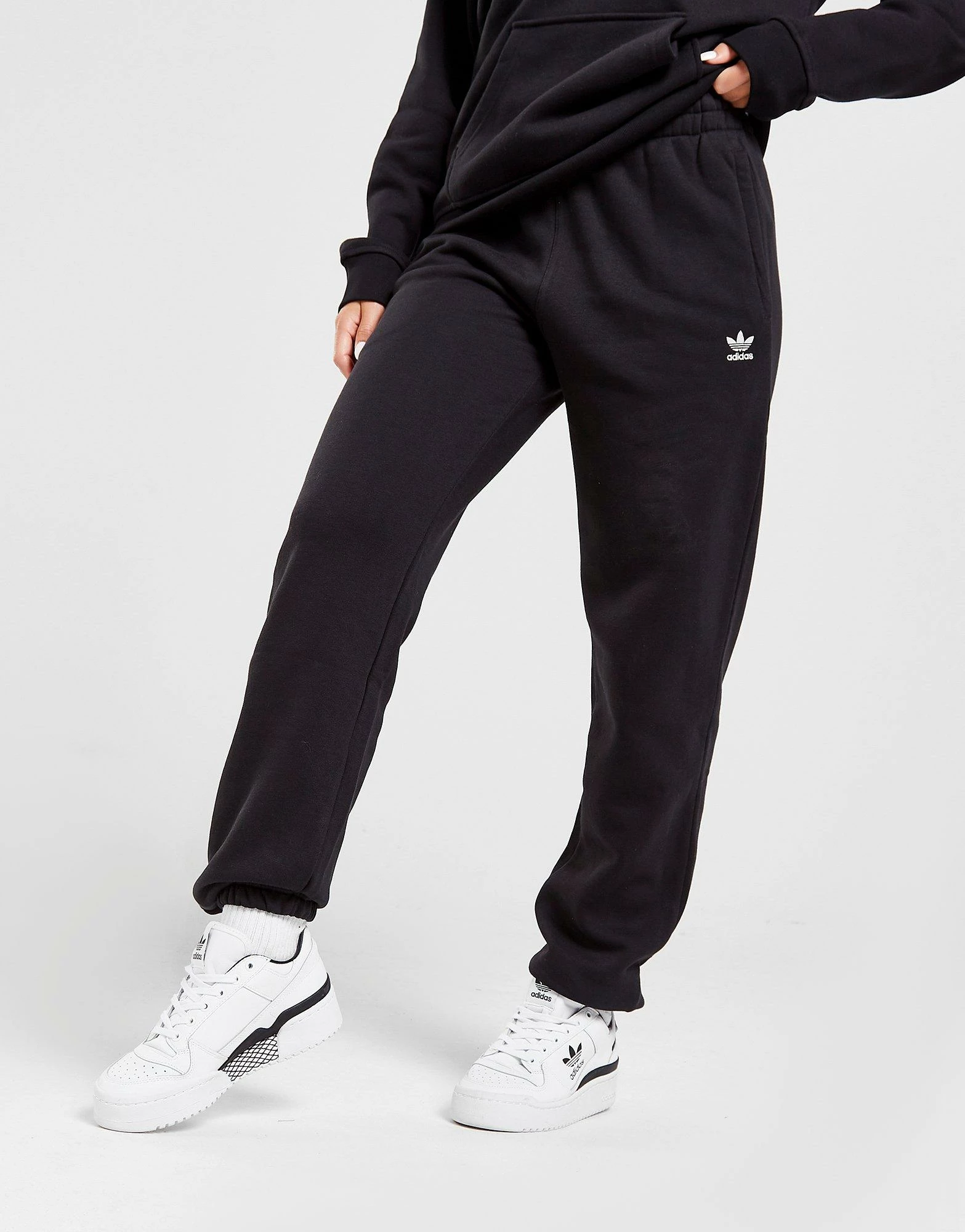 Level up on comfort with these women’s Essential Oversized Joggers from adidas Originals. In a Black colourway, these loose-fit, oversized pants are made from super soft poly-cotton fleece that uses recycled polyester fabric. They feature tapered cuffs and an elasticated waistband for a custom feel. With two side pockets, these joggers are finished up with the iconic Trefoil logo embroidered to the thigh. Machine washable.