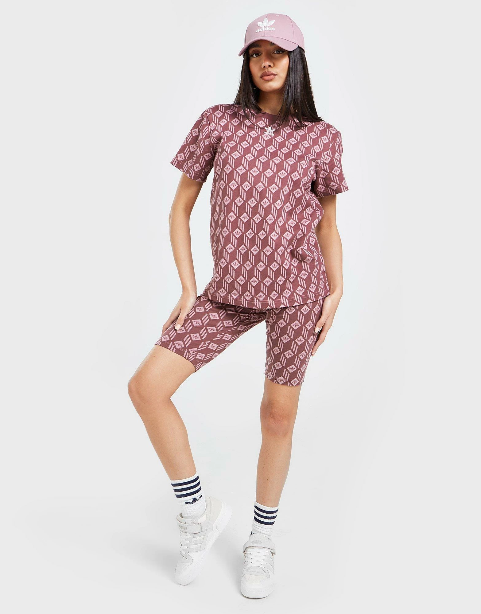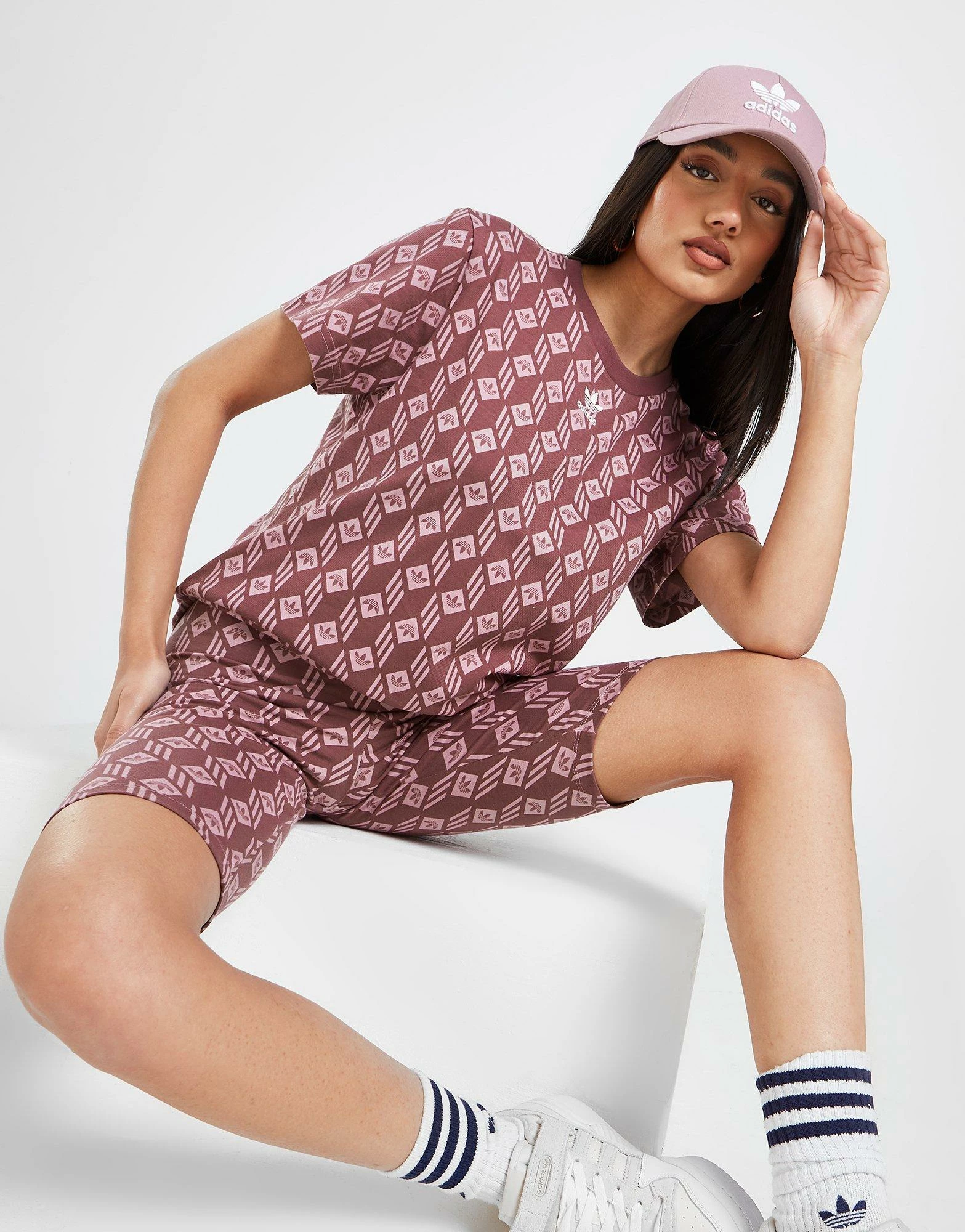 - Gennemgående 3-Stripes print og Trefoil logoer.