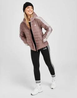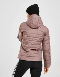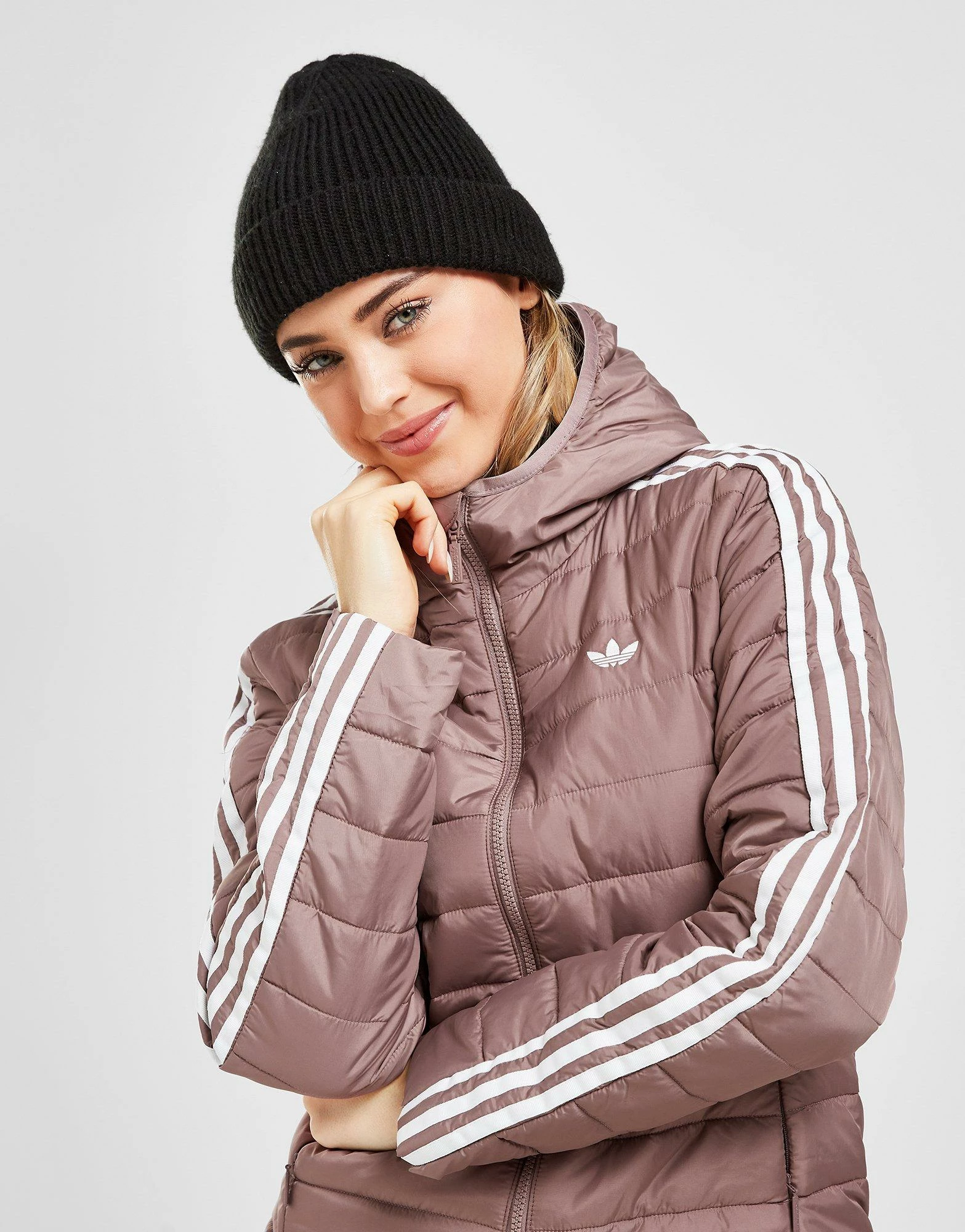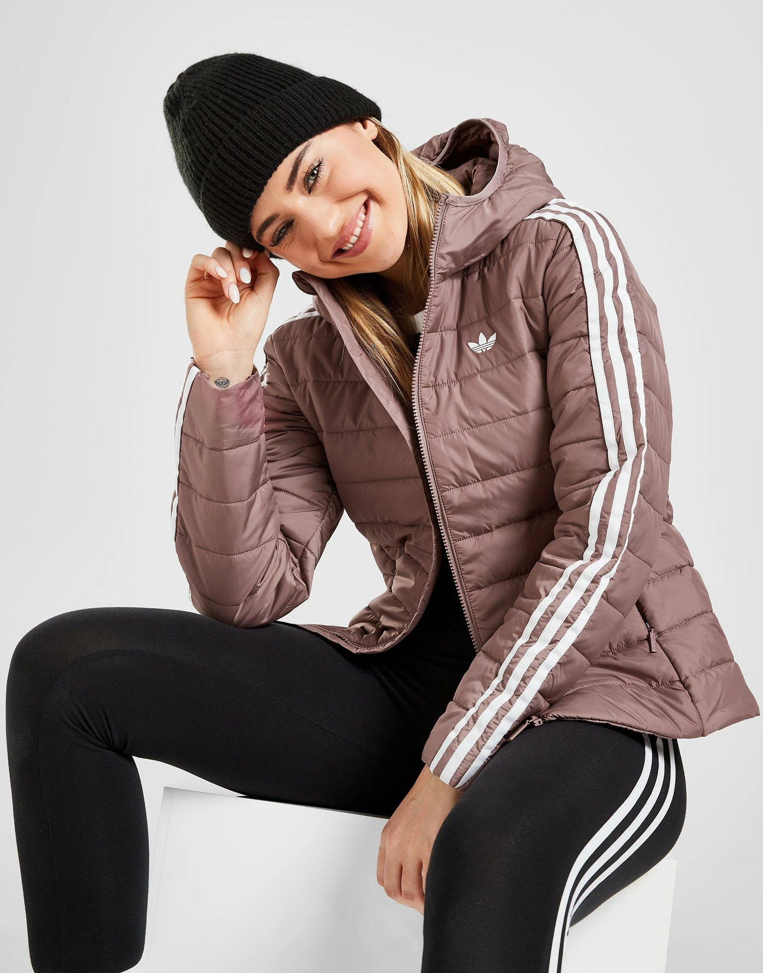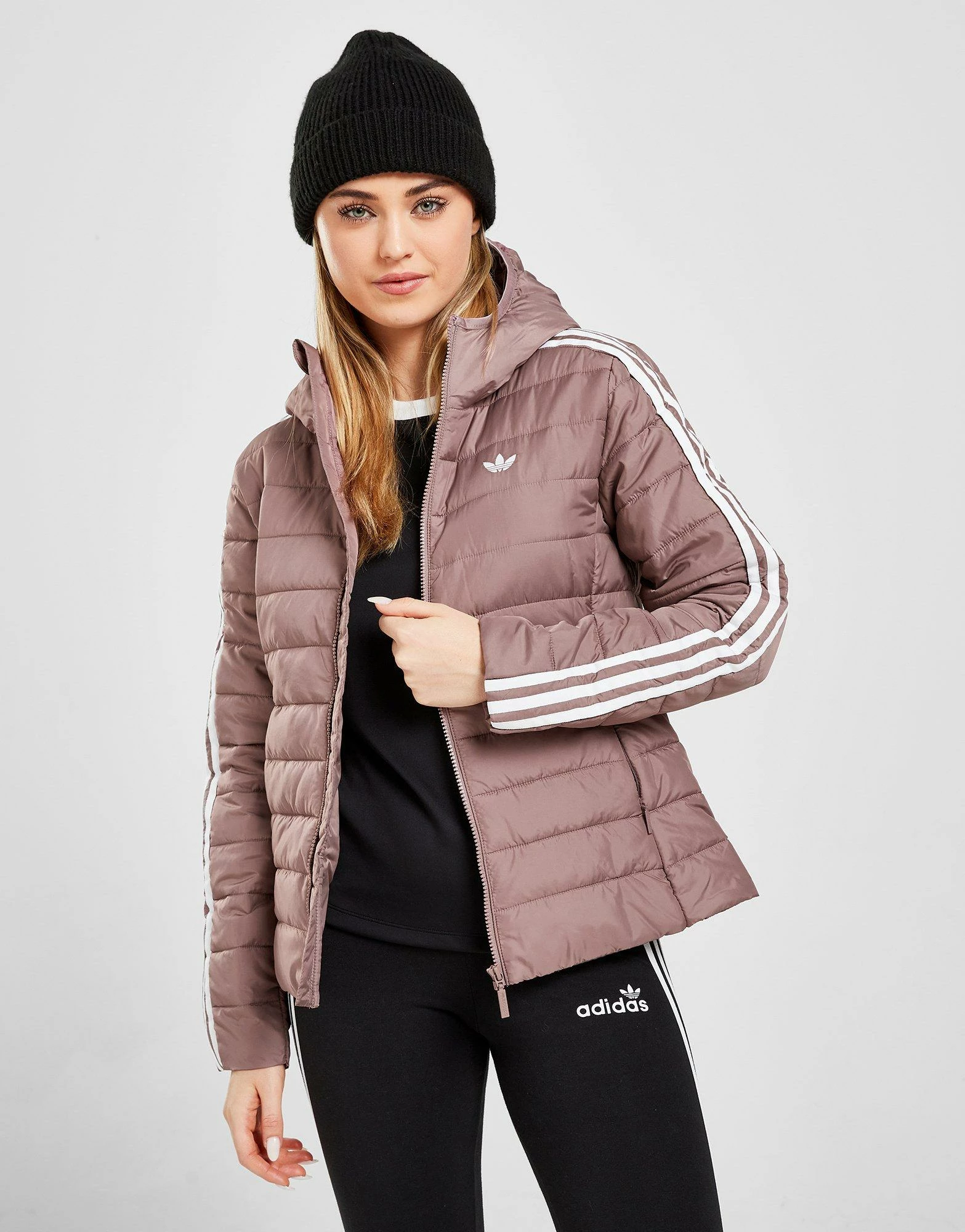 Layer up and keep out the cold with this women’s Slim Jacket from adidas Originals. In a Purple colourway, this slim fit jacket is cut from light, durable recycled polyester, with synthetic padding for extra warmth. It features a full-zip fastening and adjustable hood for custom coverage, with zip-up side pockets for secure storage. Finished up with 3-Stripes to the sleeves and a Trefoil to the chest. Machine washable | Our model is 5’7″ and wears a size 8.