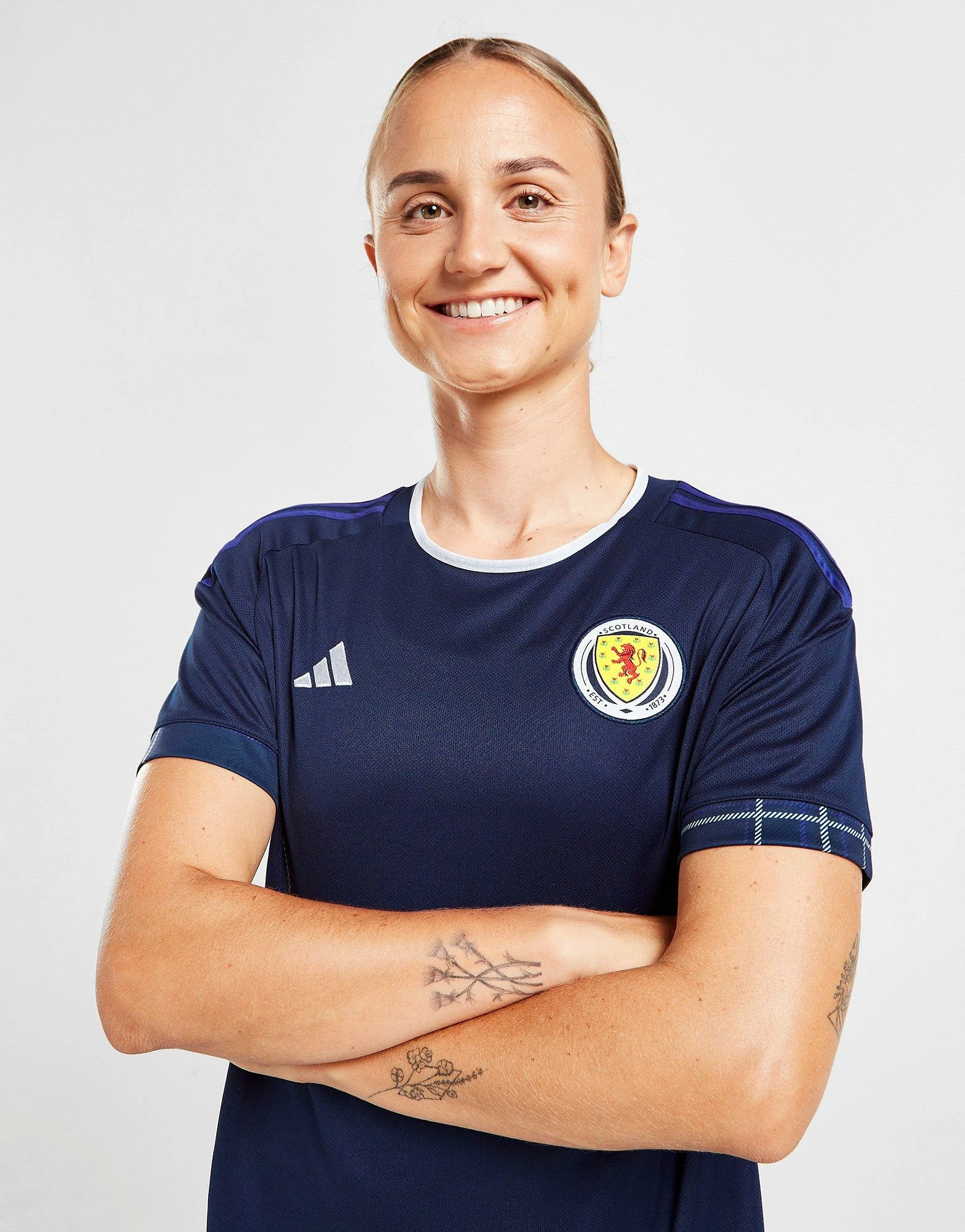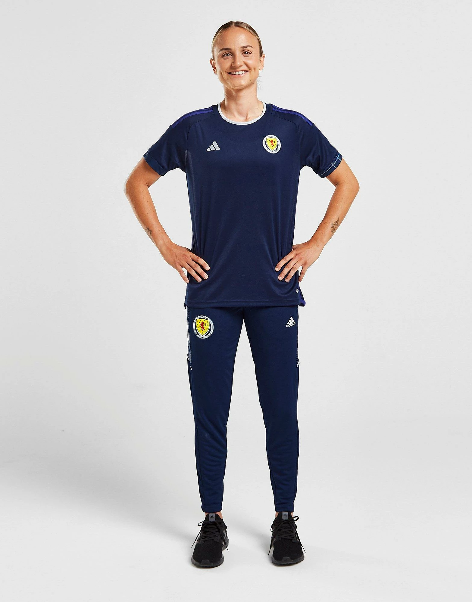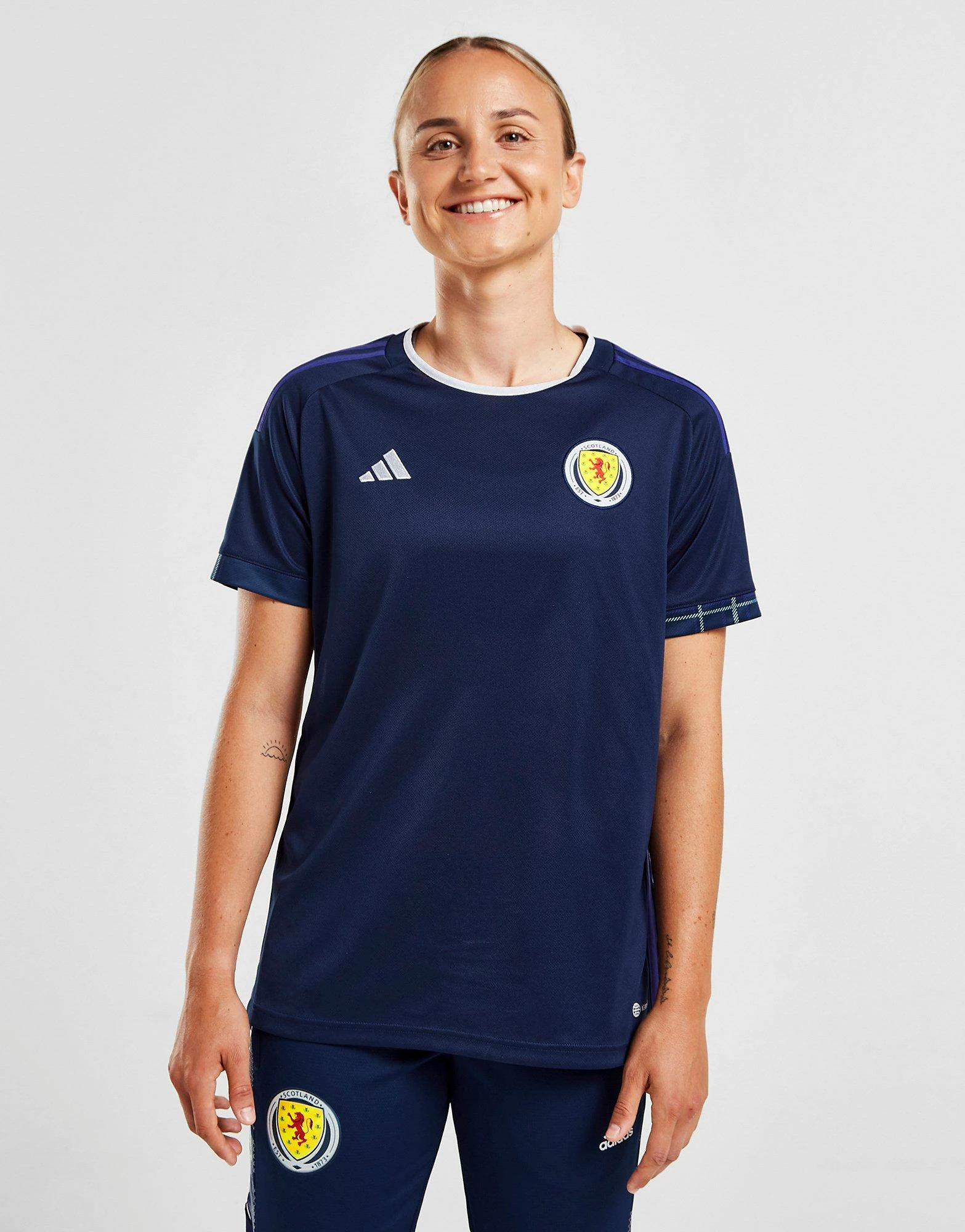 THIS ITEM IS AVAILABLE FOR PRE ORDER WITH AN EXPECTED RELEASE DATE OF 15TH SEPTEMBER. Show your support in this women’s Scotland 2022 Home Shirt from adidas. Coming in a Team Navy Blue colourway, this shirt is cut from ultra-smooth, durable recycled poly fabric for long-lasting comfort. It’s built with sweat-wicking AEROREADY tech with mesh inserts for cool, breathable wear, and features a ribbed crew neckline and short sleeves for a game-ready look. Inspired by what the pros wear, it’s finished up with adidas branding throughout and the legendary Scotland crest to sign off. Machine washable.