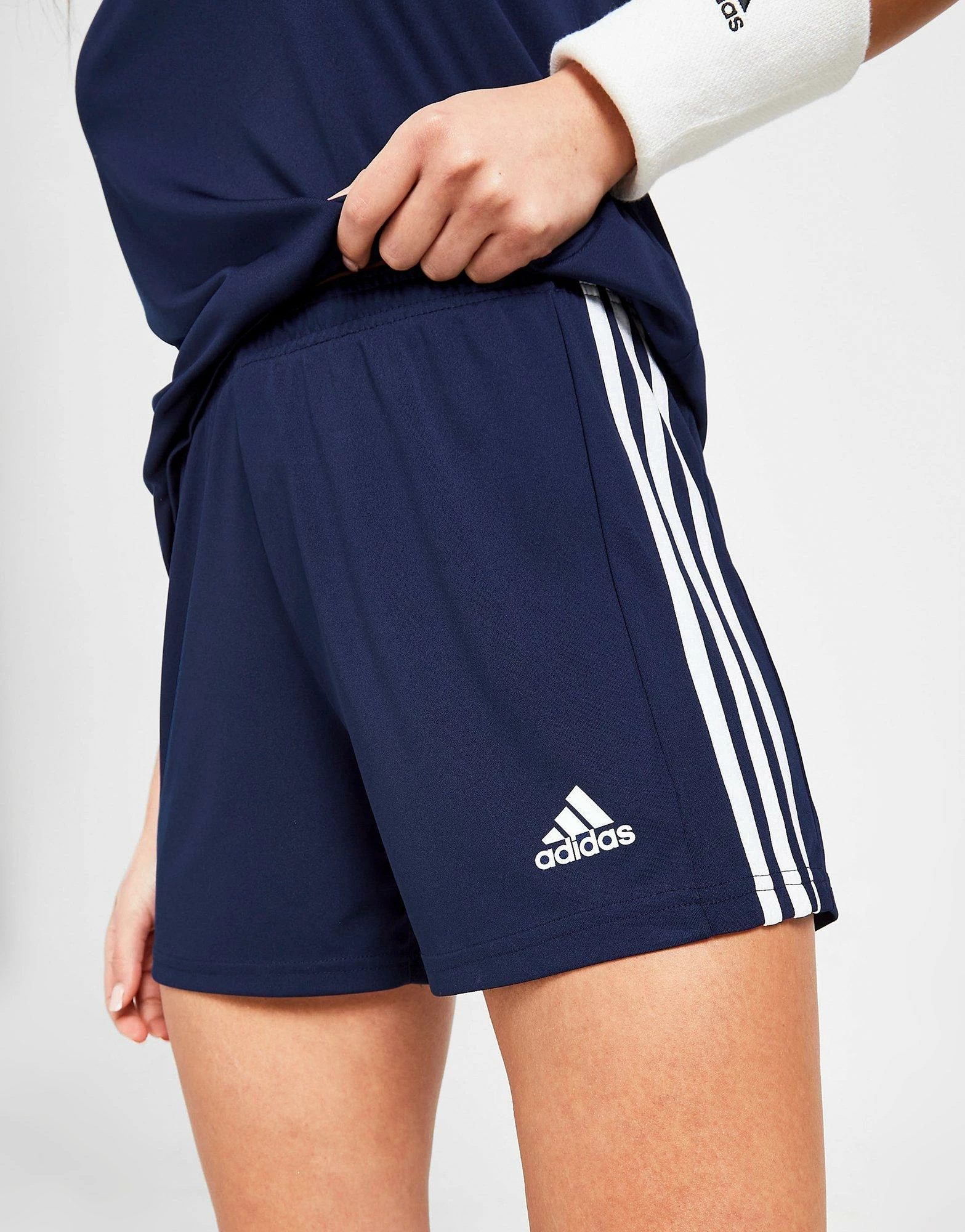 Take to the turf and show ’em what you’ve got in these women’s Squadra Shorts from adidas. In a Navy colourway, these shorts are made with light, stretchy recycled polyester for total comfort on the pitch. They feature an elasticated waistband for a relaxed wear and feature AEROREADY sweat-wicking tech to keep you cool and dry. These shorts are finished up with 3-Stripes and a Badge of Sport to the leg. Machine washable | Our model is 5’8″ and wears a size small.