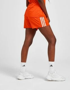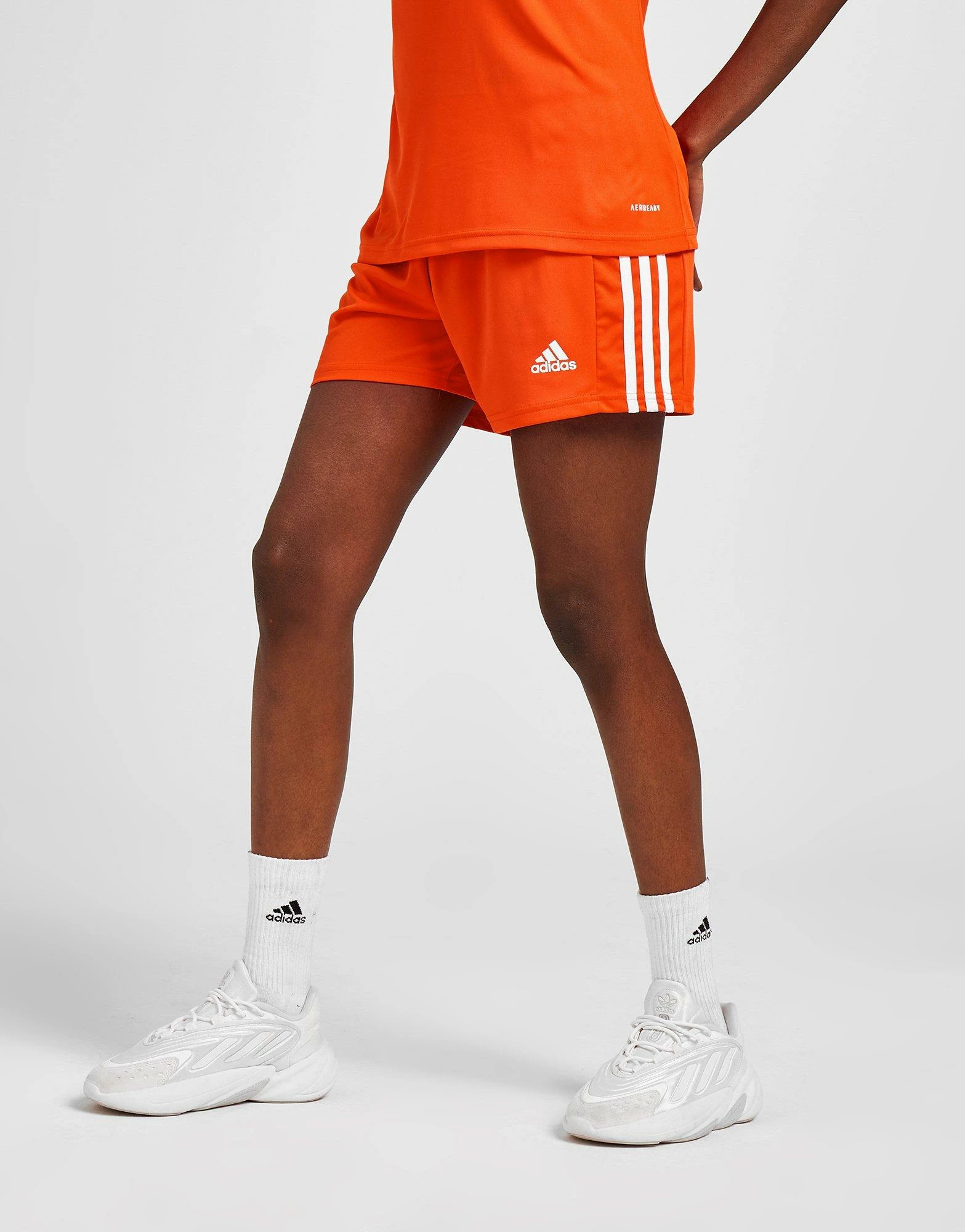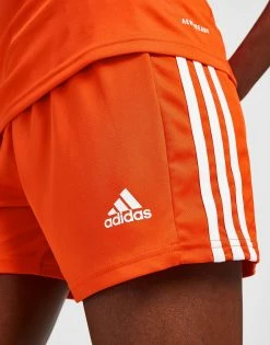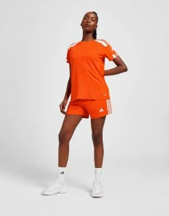 Make waves on the pitch when you step out in these women’s Squadra Shorts from adidas. Adding an athletic look to your game, these regular-fit shorts are made from lightweight recycled poly fabric, with sweat-wicking AEROREADY tech for cool comfort. They land in a Team Orange colourway and feature an adjustable drawcord to the elasticated waistband for a customised wear. Finished off with 3-Stripes to the sides and a signature Badge of Sport logo to the left leg. Machine washable. | Our model is 5’7.5″ and wears a size small.