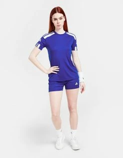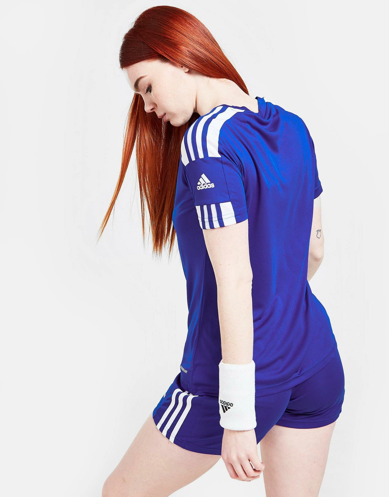 Prep for the pitch with this women’s Squadra Shirt from adidas. In a Team Blue colourway, this shirt is made from light, breathable recycled poly for cool comfort as you show off your skills. It features AEROREADY tech for wicking away sweat as you play, with short sleeves and a ribbed crew neckline for extra stretch as you move. It comes in a regular fit for a relaxed wear and is finished up with 3-Stripes and a Badge of Sport to the sleeves. Machine washable | Our model is 5’8.5″ and wears a size small.
