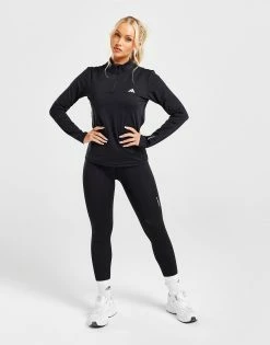 Prep for the workout in this women’s Techfit Training 1/4 Zip Top from adidas. Comin’ in a black colourway, this top is made with ultra-smooth recycled poly with added stretch for essential comfort. It has a Techfit design for a sleek, streamlined silhouette, and features a 1/4 zip closure with a raised collar to adjust your look and your airflow. It’s crafted with sweat-wicking AEROREADY tech with mesh details for added breathability, and is finished up with adidas’ iconic Badge of Sport logo at the chest. Machine washable. | Our model is 5’5″ and wears a size small.