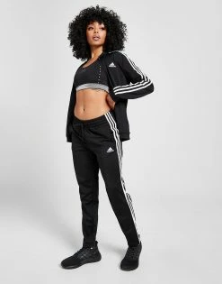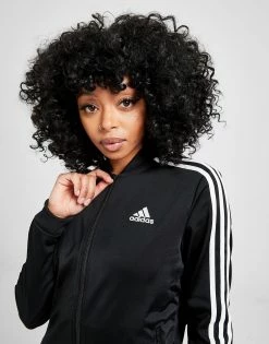 Suit up in style with this women’s Tiro Tracksuit from adidas. In a Core Black colourway, this matching set comes in a regular fit and is made from smooth and durable poly fabric for essential comfort on off-duty days. It features a full zip track top with a bomber collar and ribbed trims, while the pants come with a drawcord, elasticated waistband for an adjustable wear. With side pockets to the legs, this set is finished up with contrasting white 3-Stripes to the sides and a Badge Of Sport to the chest and thigh. Machine washable. | Our model is 5’6″ and wears a size small.