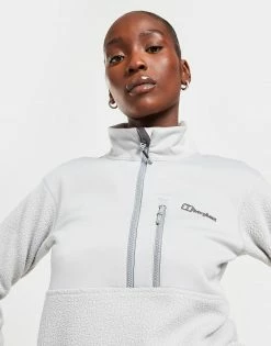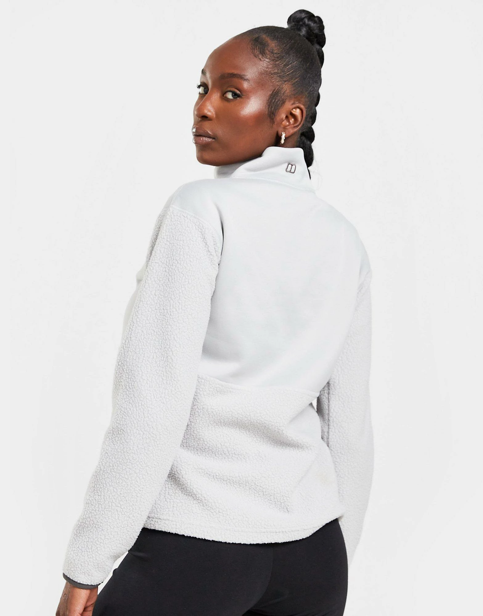 Layer up and keep cosy with this women’s Fadley 1/2 Zip Fleece Top from Berghaus. In a Grey colourway, this top is made from light, fleecey knit fabric for a super-soft feel. It features a 1/2-zip fastening and raised collar for custom coverage, with long sleeves and elasticated trims for a secure fit. It comes with a zip-up chest pocket for your essentials and is finished up with Berghaus branding to the chest. Machine washable | Our model wears a size 8.
