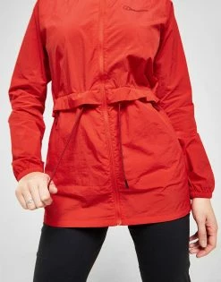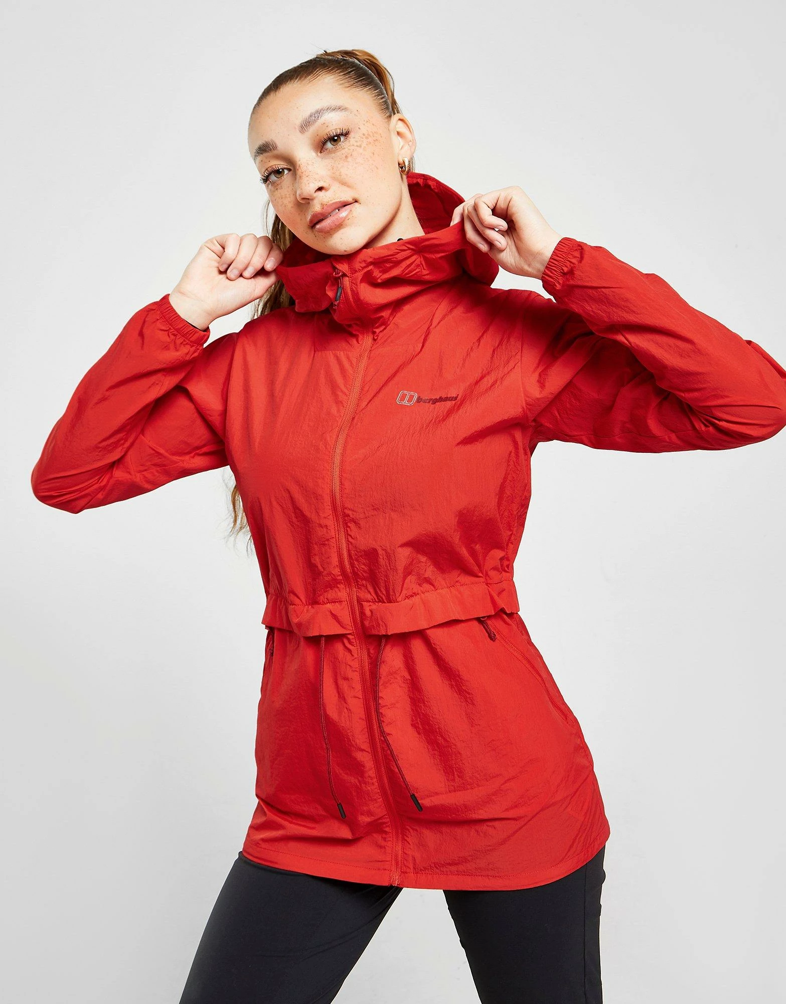 Whatever the season, stay covered with this women’s Milham Lightweight Jacket from Berghaus. In a bold red colourway, this lightweight yet durable jacket is made from windproof poly fabric, with a water-repellent coating for premium protection. It features a fully-fastened front that extends up the neck, as well as a drawcord-adjustable waist and hood for the perfect fit. With elasticated cuffs and zippered pockets to secure your staples, this coat is finished off with signature Berghaus branding to the chest. | Our model is 5’6.5″ and wears a size 8.