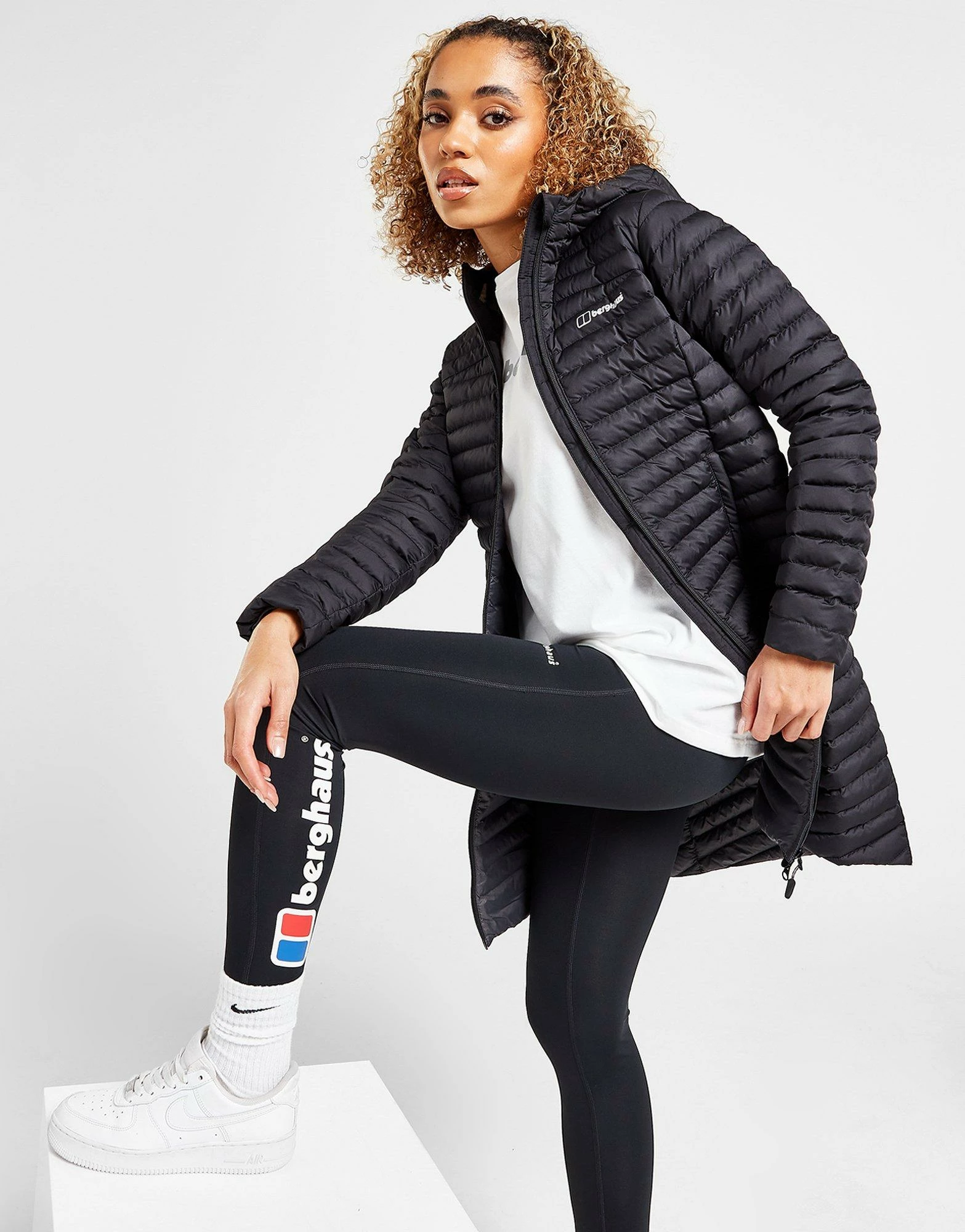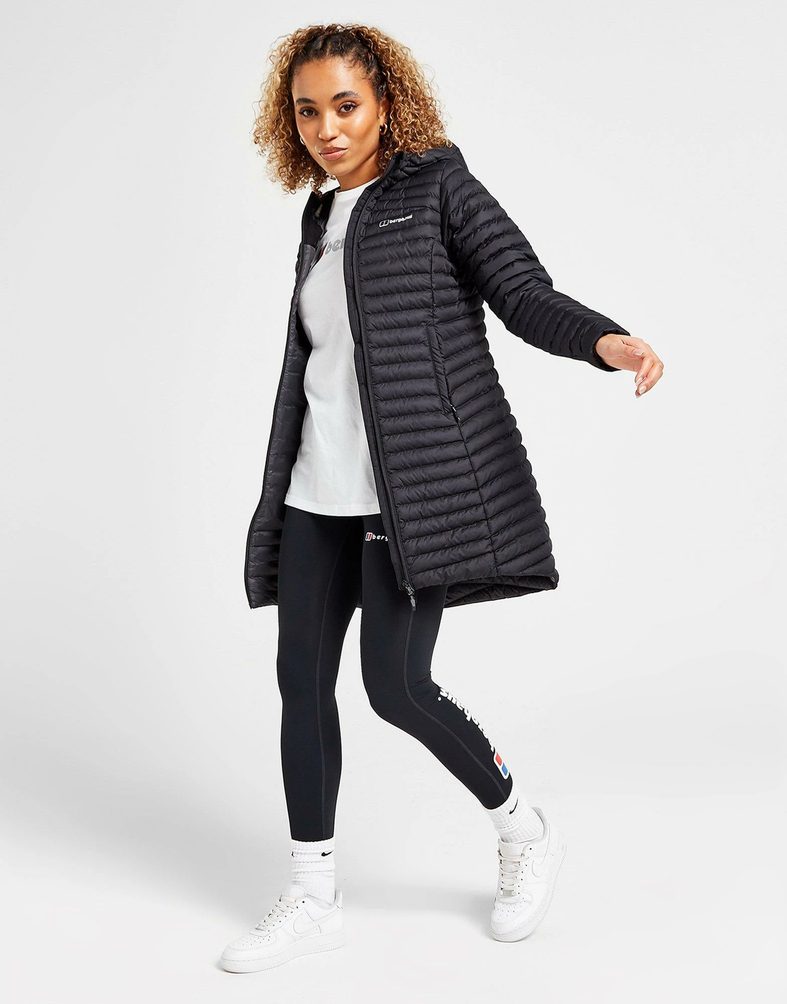 Cop some warmth ready for the Winter with this women’s Nula Micro Long Insulated Jacket from Berghaus. This jacket comes in a Black colourway and is built with a smooth, lightweight but durable poly fabric and has padded insulation throughout for maximum comfort and warmth. It features full zip fastening, a raised neckline with an adjustable hood for customisable coverage and elasticated trims for a cosy fit that keeps in the heat. With two side pockets for essential storage, it’s finished with iconic Berghaus branding to the chest. Machine washable. | Our model is 5’6″ and wears a size 8.