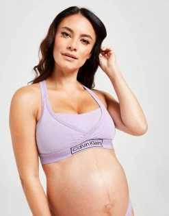 Stay supported with this women’s Maternity Box Logo Bralette from Calvin Klein. Coming in a Lilac colourway, it’s made with a super-soft stretch cotton jersey with partially-recycled fibres for supreme comfort. It features a wrapover front that’s lined for coverage, with a sporty racerback design that delivers a secure, supportive feel. It has a hook fastening at the back for a custom fit, and a keyhole cutout for breathable wear. Finished up with a Calvin Klein box logo at the underband. Machine washable.