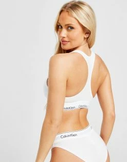 Give your underwear a refresh with some stepped up style in this women’s Modern Cotton Bralette from Calvin Klein Underwear. In a white colourway, this bralette is made from a stretchy cotton blend for a comfy and supportive fit. With two thin shoulder straps and a racerback design, this bralette gives you a statement look. Finished with a Calvin Klein branded underbust band for a firm wear and premium style. | Our model is 5’8″ and wears a size 8.