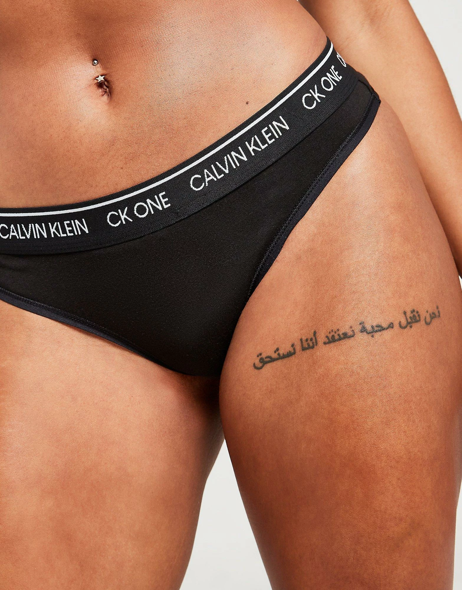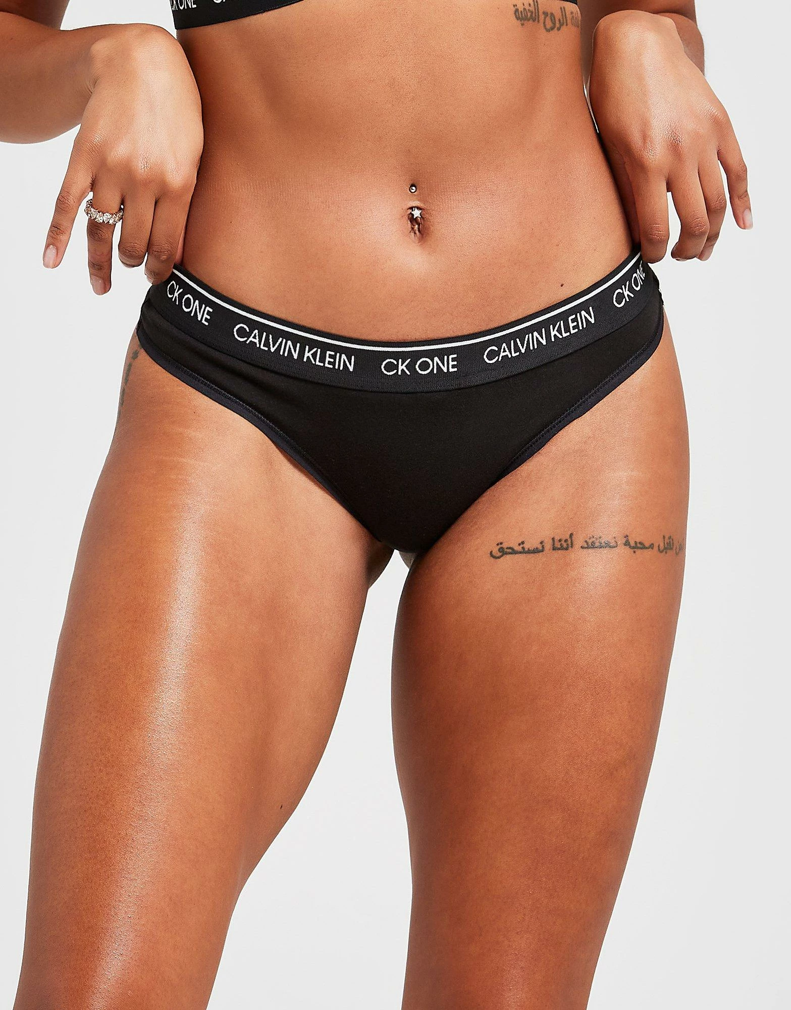 Upgrade your underwear collection with this women’s One Thong from Calvin Klein. In a black colourway, this thong is made from a super soft and stretchy cotton fabric for easy, everyday comfort. In a thong style cut for minimal coverage, it’s finished with repeating Calvin Klein branding. Machine washable. Please note: For hygiene reasons, underwear cannot be returned.