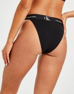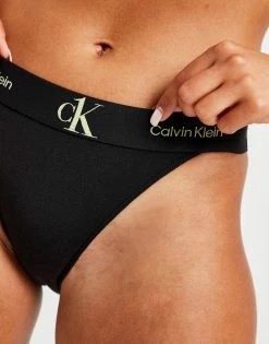 Refrsh your underwear rotation with these women’s CK One Tanga Briefs from Calvin Klein. In a Black colourway, these slim-build briefs have a high leg silhouette and an elasticated waistband for a secure, comfy fit. Made from a ultra-soft cotton-modal blend, these briefs are finished up with contrasting CK branding repeated around the waist. Machine washable. Please note: For hygiene reasons, underwear cannot be returned. | Our model is 5’8″ and wears a size small.