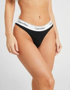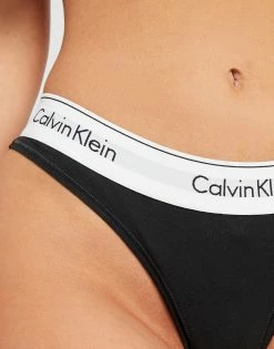 Add some premium style to your everyday essentials with this Modern Cotton Thong from Calvin Klein. In a black colourway with white trims, this thong is made from a stretchy cotton blend to keep you supported and comfy. With a medium rise waistband for a fresh fit and cut in a classic thong design, it is finished with repeating Calvin Klein branding to the waistband in black. Machine washable. Please note: For hygiene reasons, underwear cannot be returned.