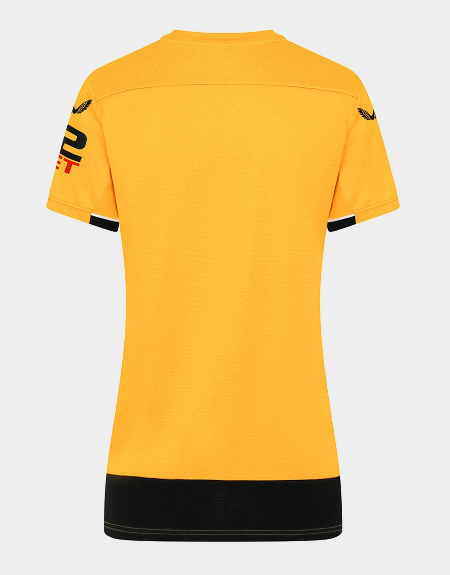 Show your support in this women’s Wolverhampton Wanderers FC 2022/23 Home Shirt from Castore. In a Gold colourway, this slim-fit shirt is made from smooth poly fabric. It wicks away sweat to keep you cool when the game heats up, and features a V-neckline and short sleeves. Finished with Castore branding and the signature Wolves crest to the chest. Machine washable.