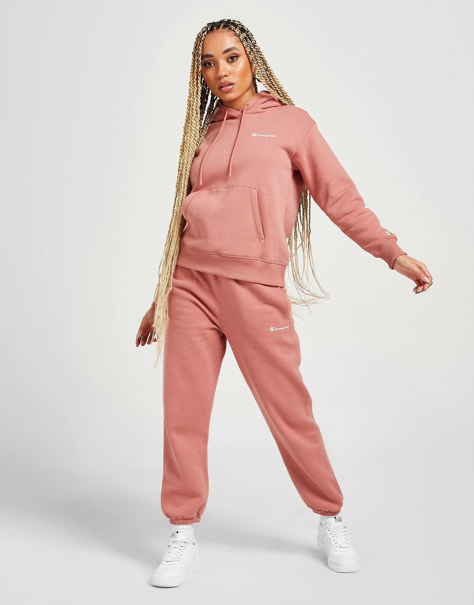 Cosy up on off-duty days in these women’s Small Logo Fleece Joggers from Champion. Exclusive, these regular-fit joggers are made from super-soft cotton fleece for total comfort. They come in a brown colourway and feature an adjustable drawcord waistband for a customised fit, as well as ribbed cuffs and side pockets. These sweats are finished up with signature Champion branding to the thigh. Machine washable. | Our model is 5’7″ and wears a size medium.