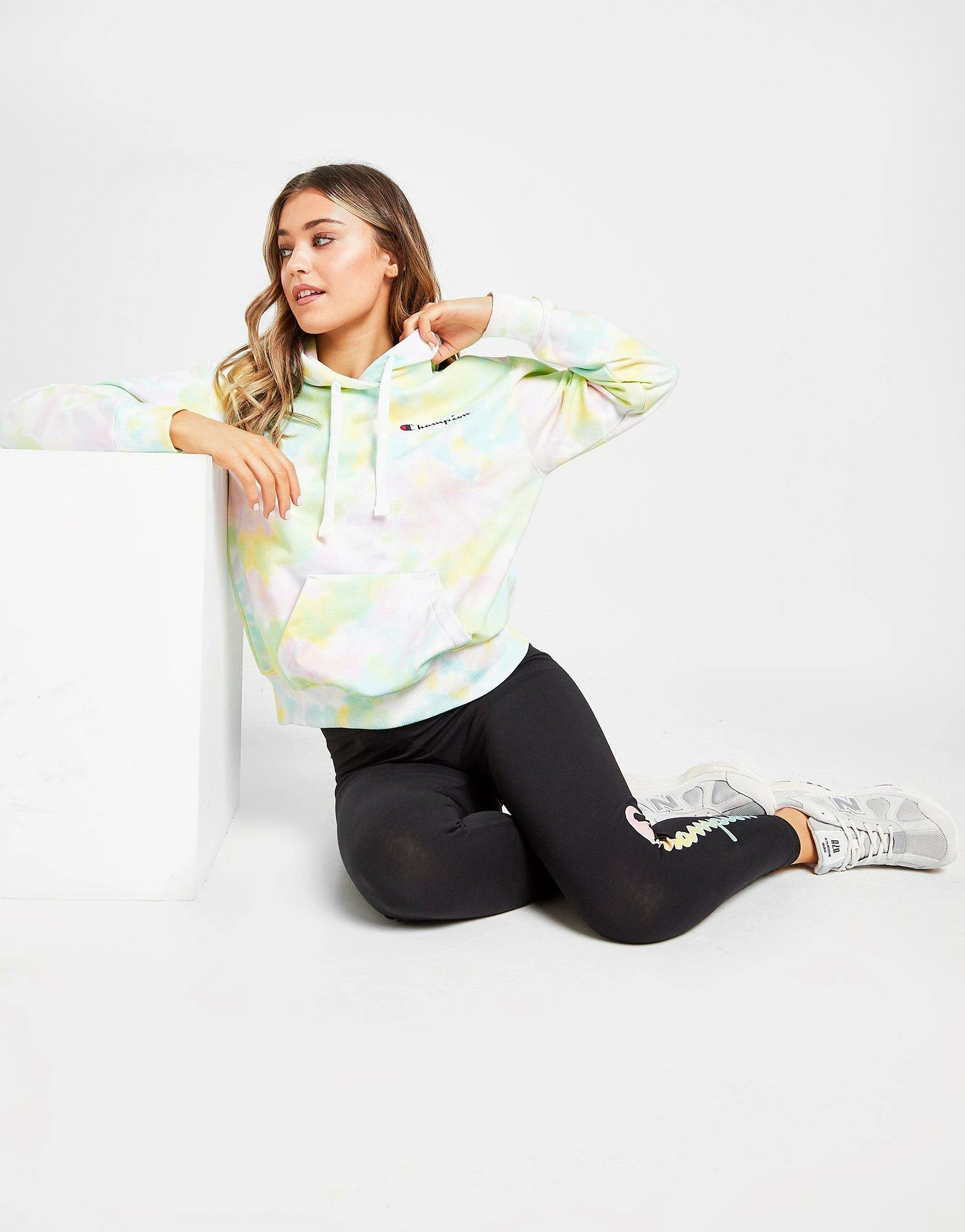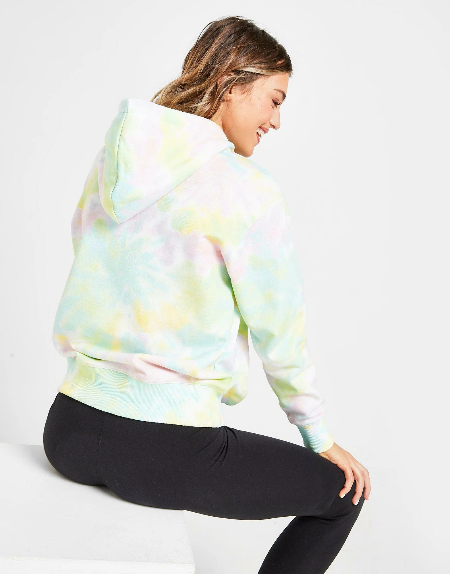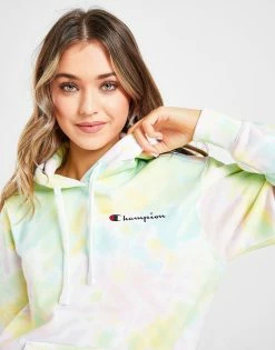 Brighten up your layers with this women’s Tie Dye Boyfriend Overhead Hoodie from Champion. In a multi-coloured, tie-dye design, this loose-fit hoodie is made from a soft cotton fleece. It has an overhead style, and features an adjustable hood for cosy coverage. With ribbed trims and dropped shoulders for a relaxed vibe, this hoodie is finished with signature Champion branding to the chest. Machine washable. | Our model is 5’7″ and wears a size small._