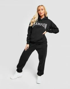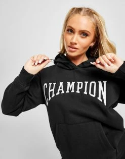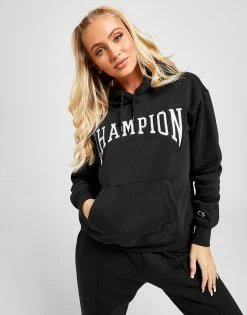 Keep it chilled in this women’s Varsity Overhead Hoodie from Champion. Made with soft, durable cotton-blend fabric, this hoodie comes in a Black colourway that’s exclusive. With a classic pullover design, it features an adjustable hood and long sleeves to keep ya covered, with ribbed trims to optimise the shape. With a regular-fit for an easy feel, this hoodie is finished up with a varsity-style Champion logo for all the vintage vibes. Signed off with the iconic ‘C’ stitched to the wrist. Machine washable. | Our model is 5’8″ and wears a size small.
