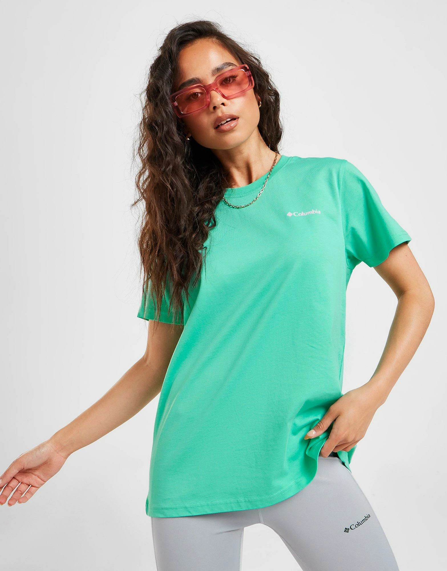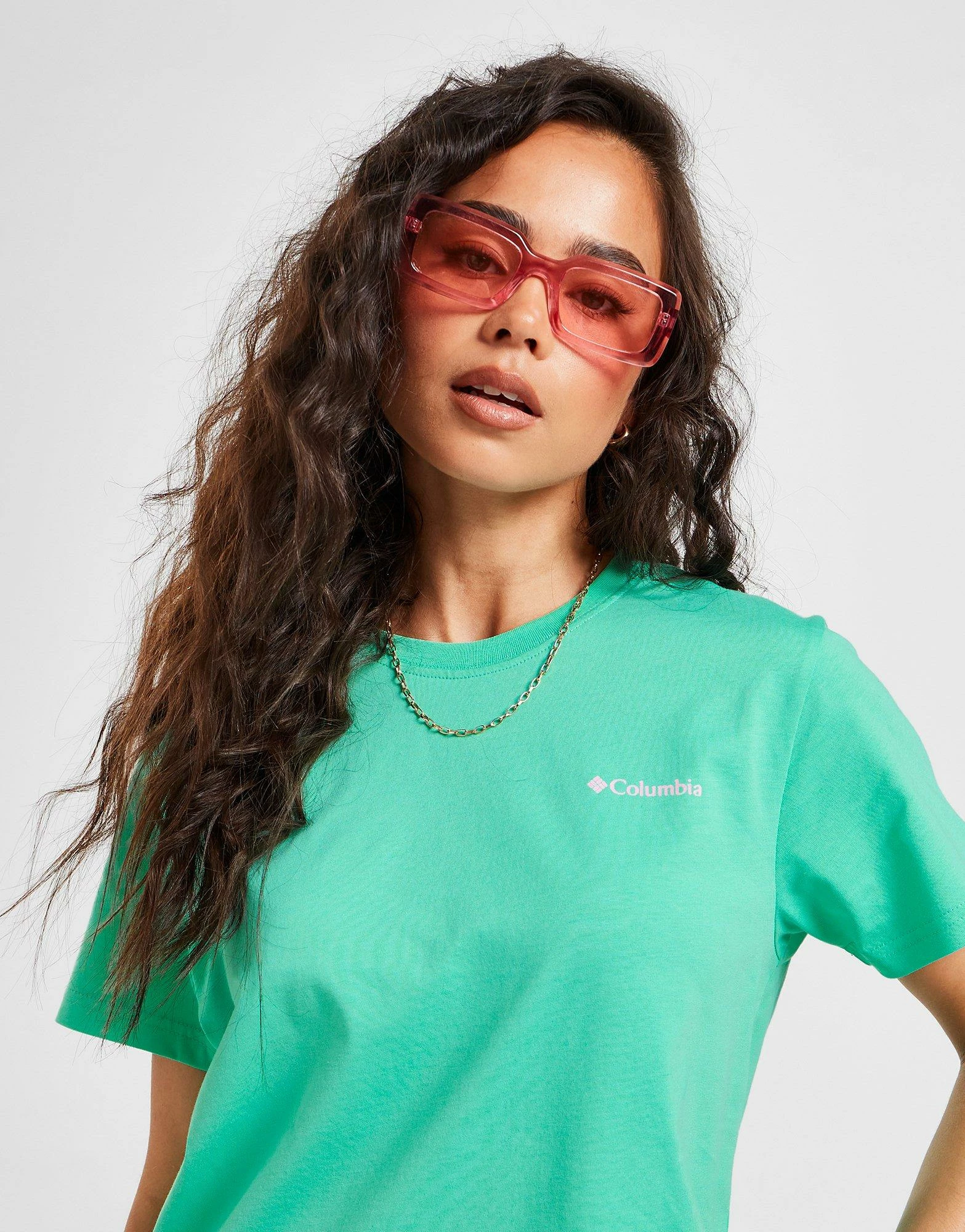 Cop some essential summer heat with this women’s Mountain Graphic T-Shirt from Columbia. In a Mint Green colourway, this standard fit tee is made from soft cotton fabric for everyday comfort. It features a ribbed crew neckline with short sleeves and is finished up with Columbia branding to the chest, with a mountain graphic to the back. Machine washable | Our model is 5’7″ and wears a size 8.