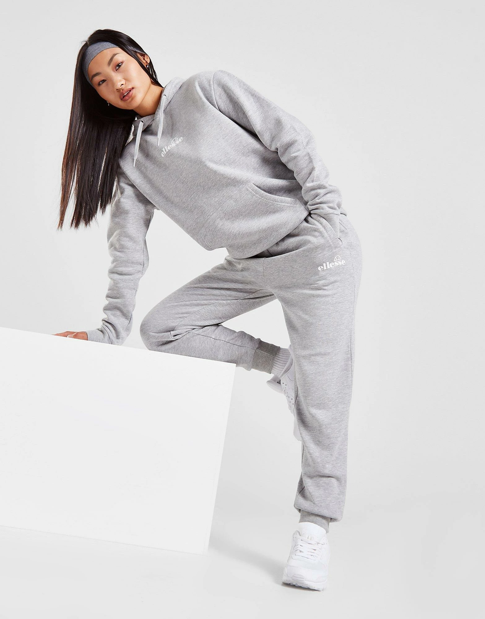 Keep it casual when you rep these women’s Logo Joggers from Ellesse. In a Grey colourway, these regular-fit sweats are made from a soft cotton and poly mix for fleecy comfort. They have drawcord ties at the waistband to adjust the fit, while cuffed ankles taper the legs. With open-hand pockets at the sides, these pants are finished with outline Ellesse branding to the left thigh. Machine washable. | Our model is 5’5.5″ and wears a size 8.