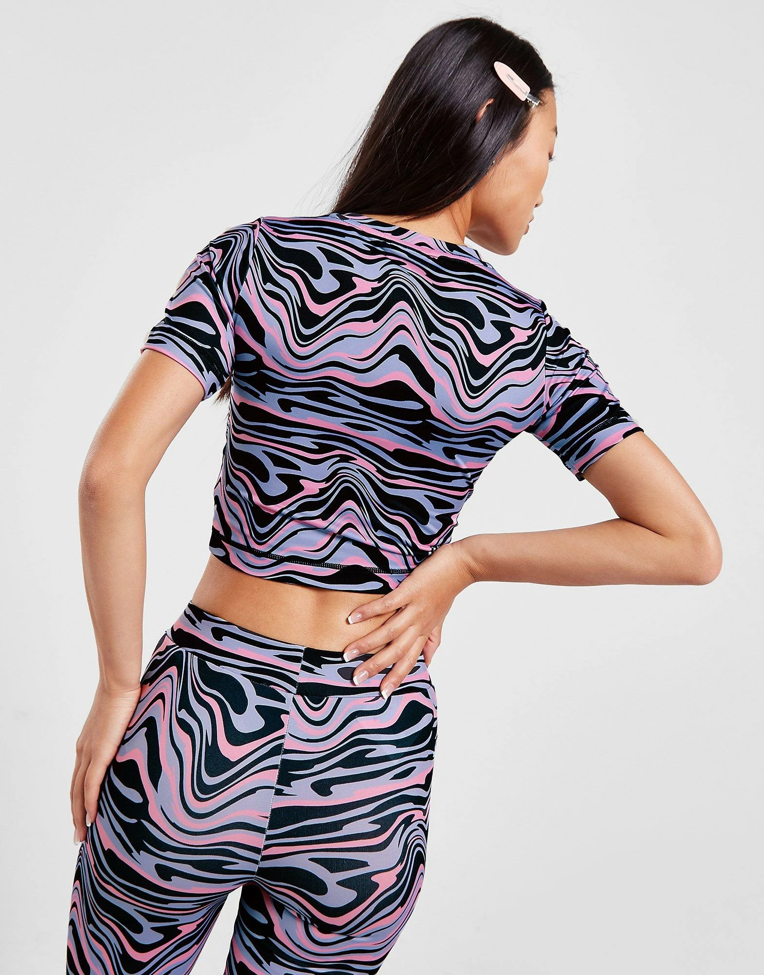 Cop eye-catching style for your new season look with this women’s Marble Crop Top from Ellesse. In a multi-coloured marble design, this ’90s-inspired top is made from stretchy cotton for a slim fit. It features a classic crew neckline, short sleeves and a cropped hem for cool comfort. Finished off with a reto Ellesse badge to the chest. Machine washable. | Our model is 5’5.5″ and wears a size 8.