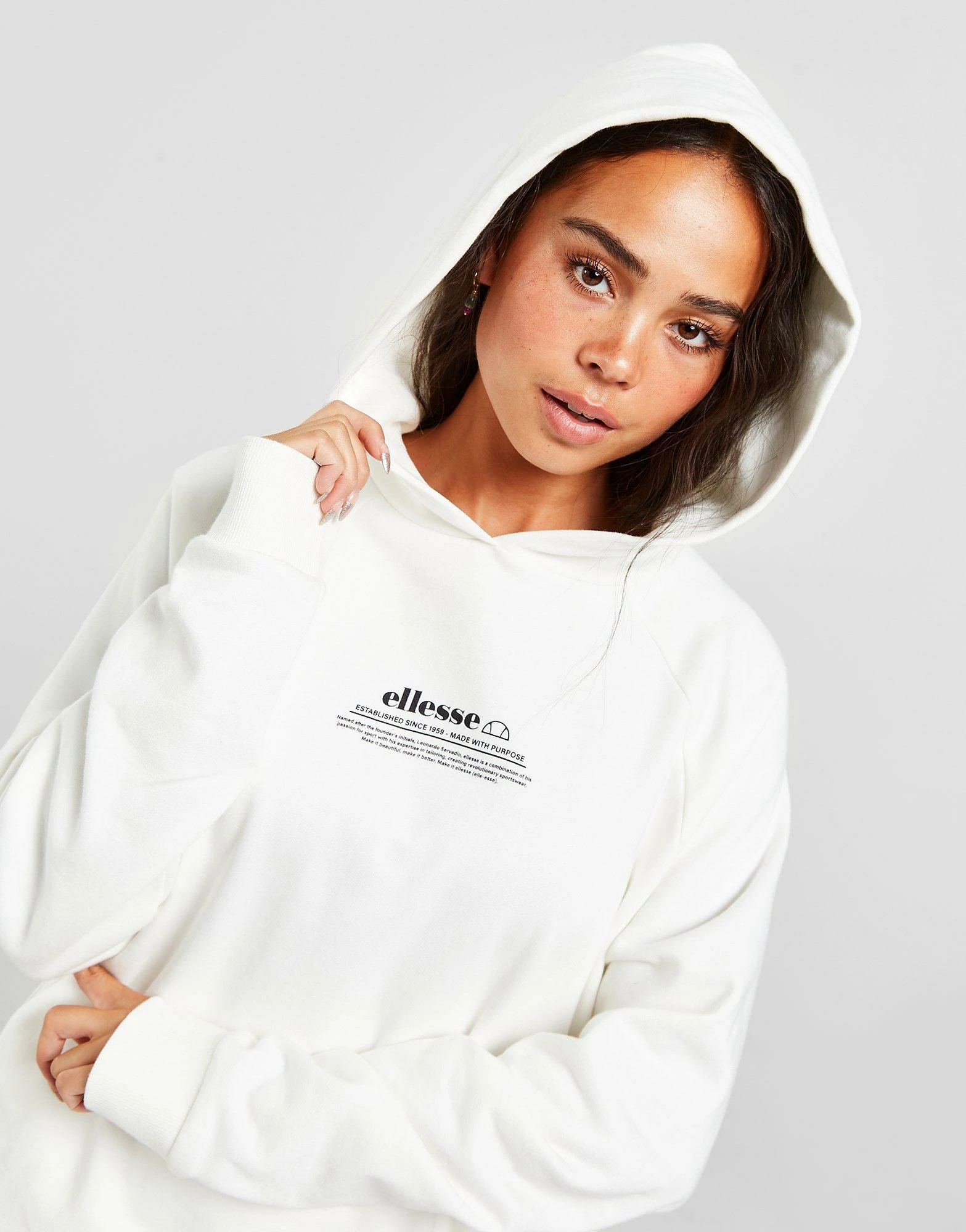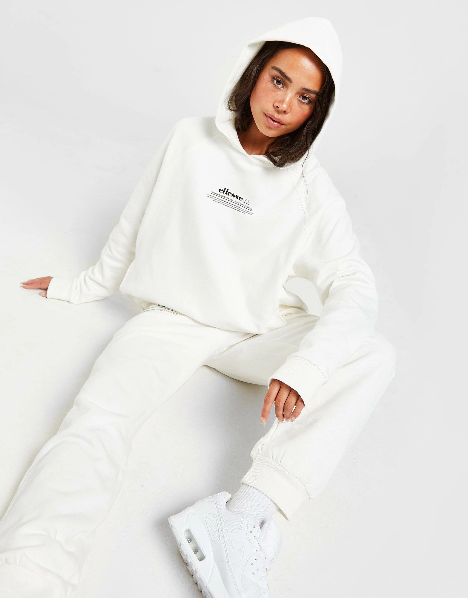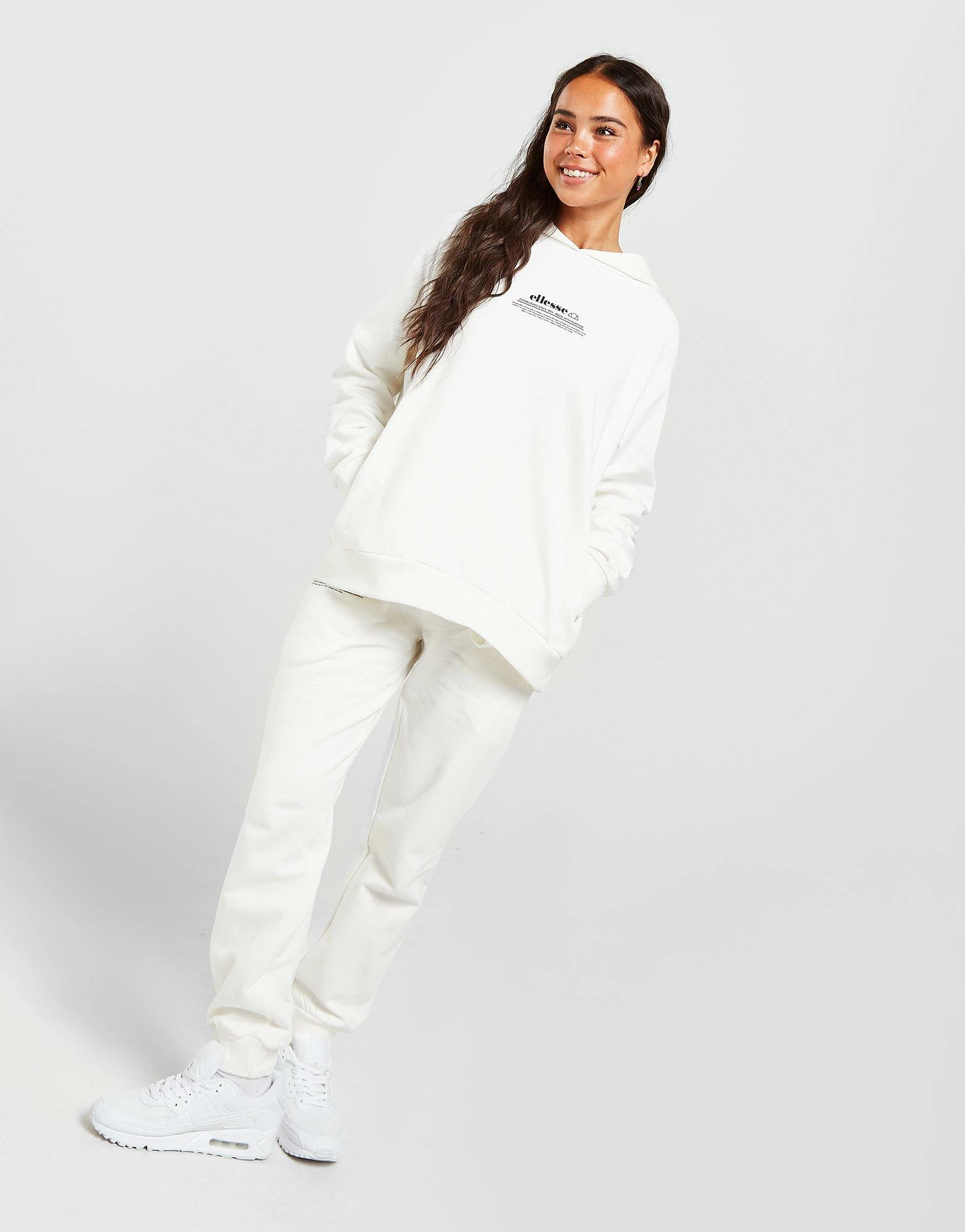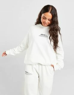 Rep a cosy look on off-duty chills with this women’s Text Logo Boxy Hoodie from Ellesse. In an Off White colourway, this relaxed pullover has a snug hood, dropped shoulders and ribbed trims for laidback comfort. Made from a soft, fleecy cotton blend for a plush feel, this hoodie is finished off with a kangaroo pocket and contrasting Ellesse text branding to the chest. Machine washable. | Our model is 5’5″ and wears a size 8.