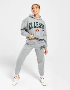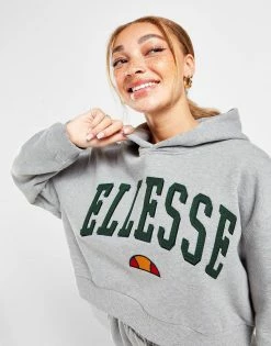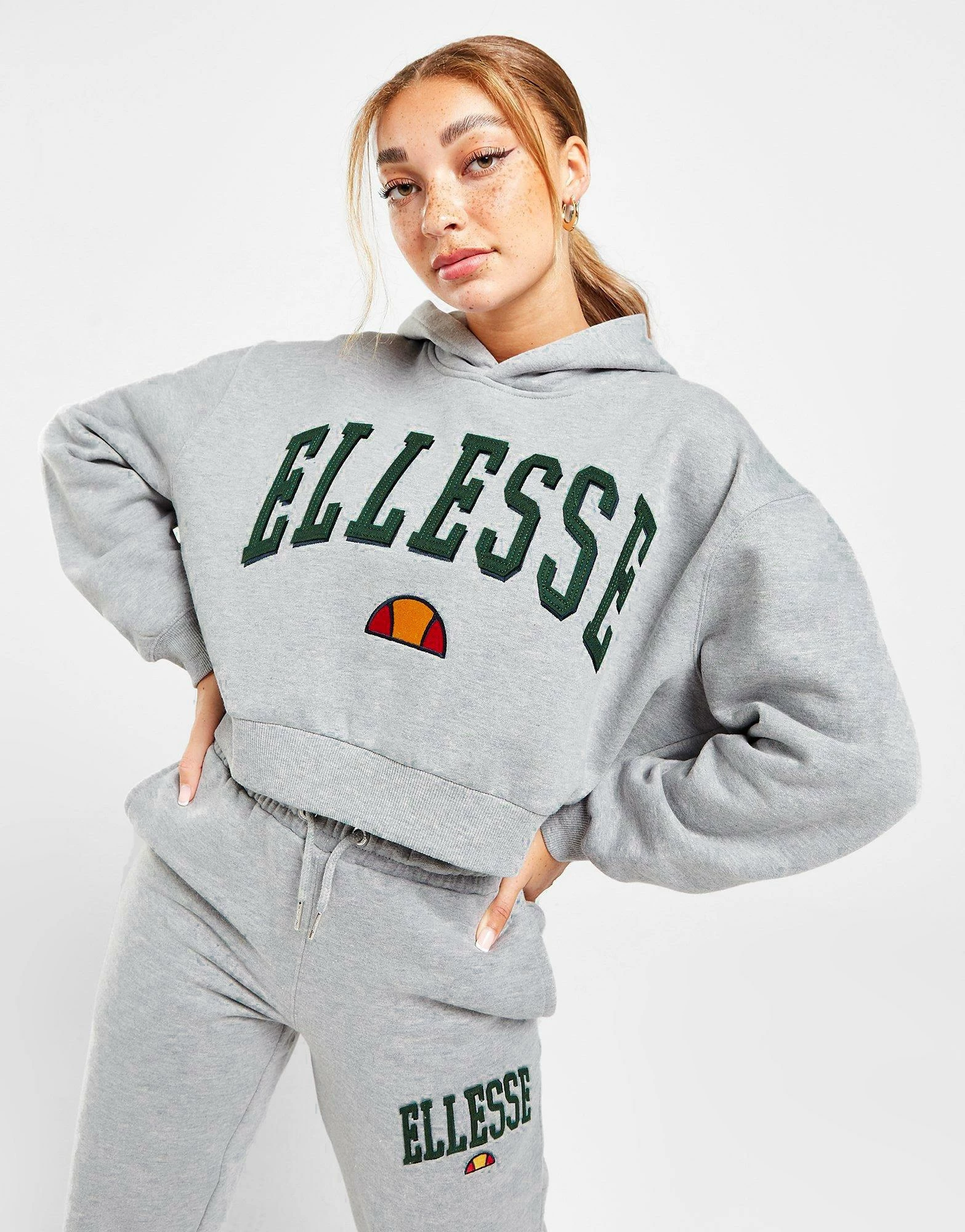 Layer up in this women’s Varsity Crop Hoodie from Ellesse. In a Grey colourway, this regular-fit hoodie is cut from a cotton poly blended fabric that’s super-soft and warm for cosy wear. It has an overhead design for a classic look and features a fixed hood for coverage whilst ribbed trims secure the shape. With a cropped hem for a laidback look, it’s finished up with Ellesse branding to the chest. Machine washable. | Our model is 5’6.5″ and wears a size 8.