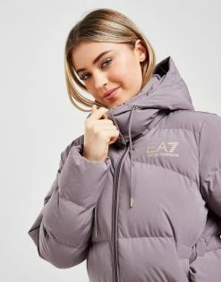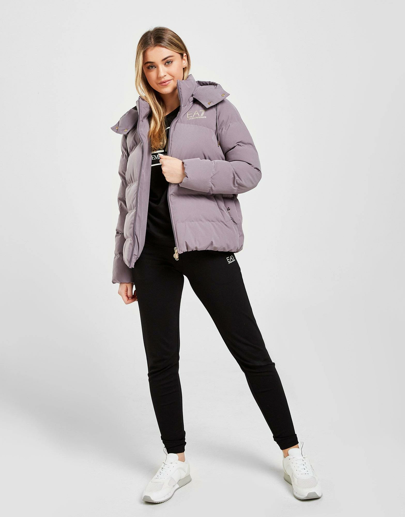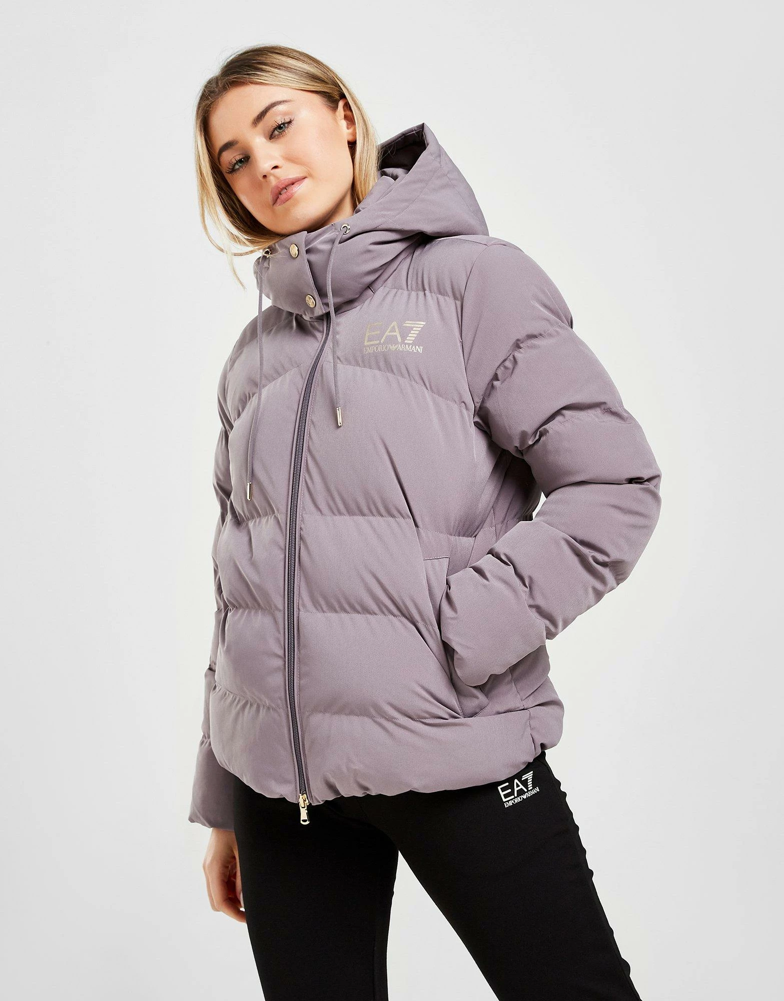 Get premium protection when the temp’ dips with this women’s Padded Logo Jacket from Emporio Armani EA7. Coming in a Pink colourway, this regular-fit coat is made with a smooth and durable poly fabric that’s loaded with synthetic padding to keep you toasty when you need it most. It features full zip fastening with a risen collar and an adjustable hood for custom coverage that locks out the cold. With elastic cuffs for a snug fit and side pockets for storage, it’s signed off with EA7 branding to the chest. | Our model is 5’7″ and wears a size small.