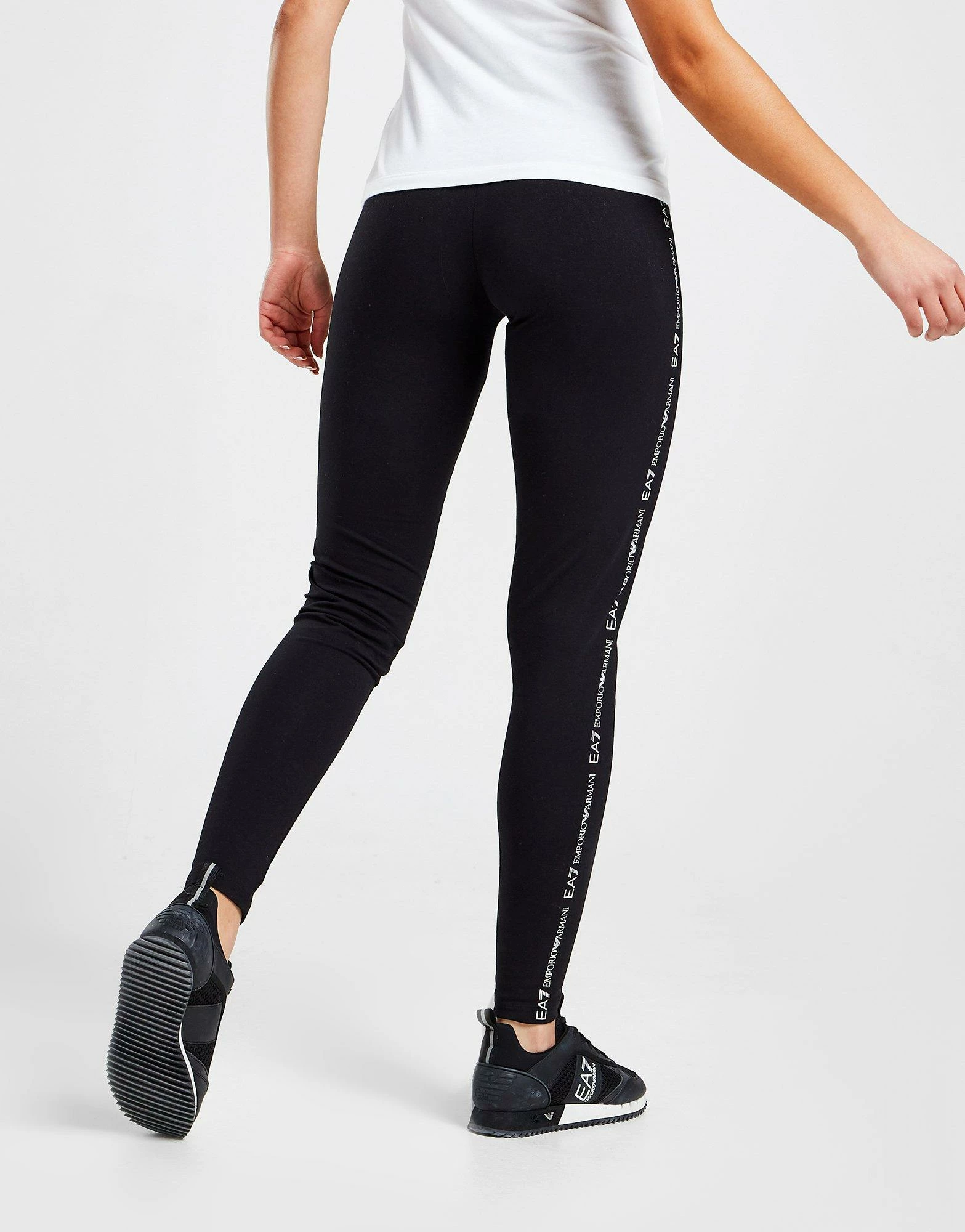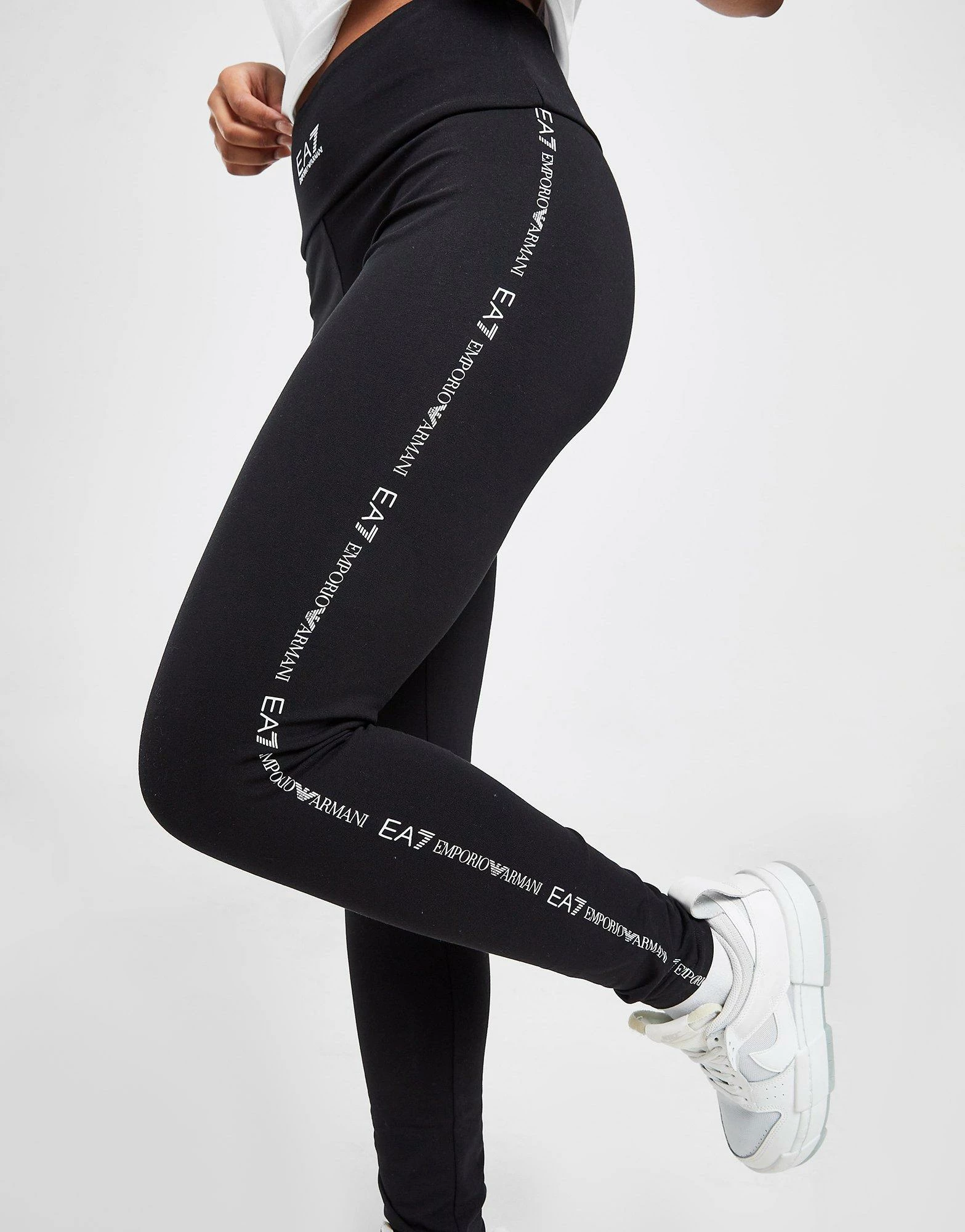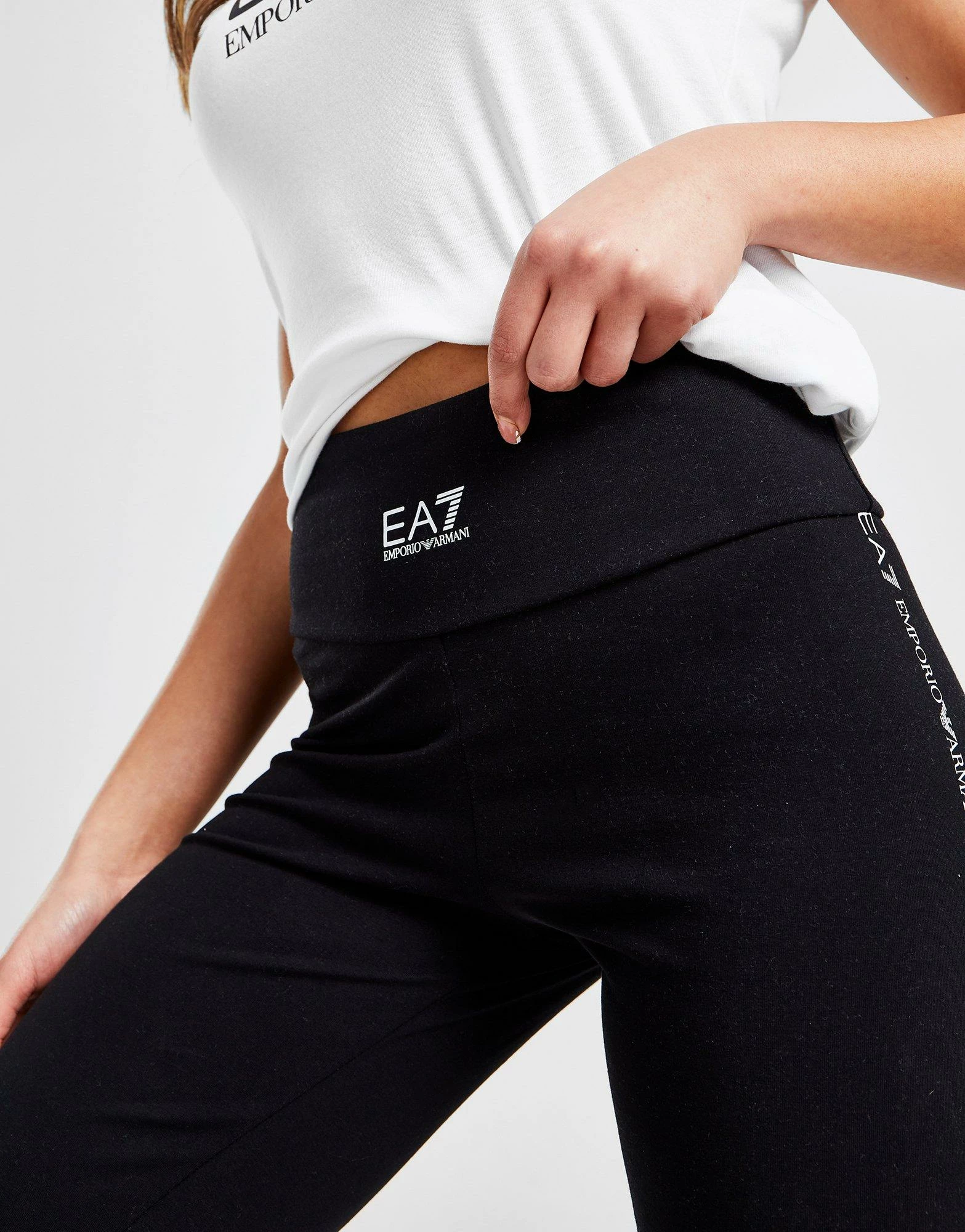 Need some premium comfort for when the weekend arrives? Then pick up these Tape High Waisted Leggings from Emporio Armani EA7. Exclusive, these tight-fit leggings come in a Black colourway and are made with an ultra-soft and stretchy cotton fabric for lasting comfort. They feature an elasticated waistband for a snug, supportive fit and have tape branding to the sides. Finished up with Emporio Armani EA7 branding to the waistband. Machine washable. | Our model is 5’6″ and wears a size 8.