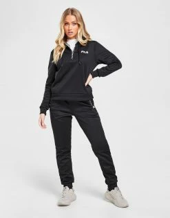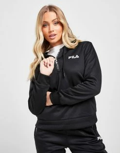 Sport a retro-inspired look with this women’s Poly 1/4 Zip Hoodie from Fila. In a black colourway, this exclusive ‘fit features a 1/4 zip fastening and adjustable drawcord hood for custom coverage, as well as long sleeves and ribbed trims. Made from ultra-smooth and comfy poly fabric, this hoodie is finished with taped branding to the zip and an embroidered logo to the chest. Machine washable. | Our model is 5’9″ and wears a size 8.