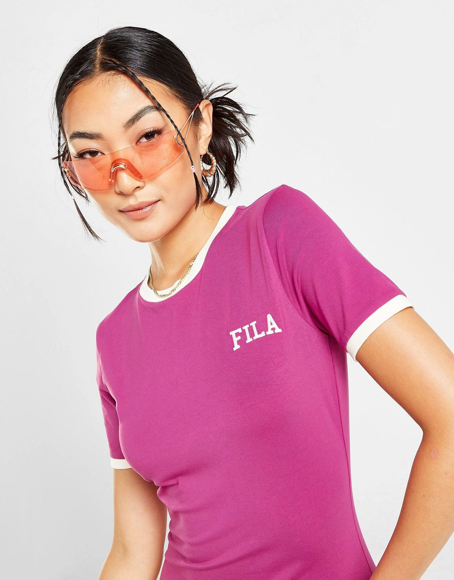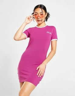 Cop a casual look with this women’s Ringer Dress from Fila. In a Pink colourway with White trim, this dress is cut from light, stretchy cotton fabric for total comfort. It features short sleeves with a crew neckline and is finished up with Fila branding to the chest. Machine washable | Our model is 5’8″ and wears a size 8.