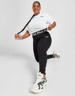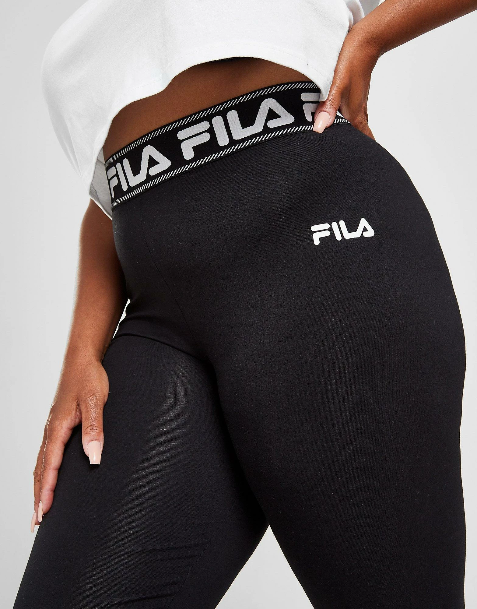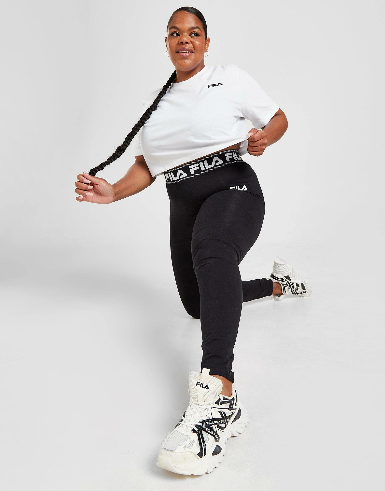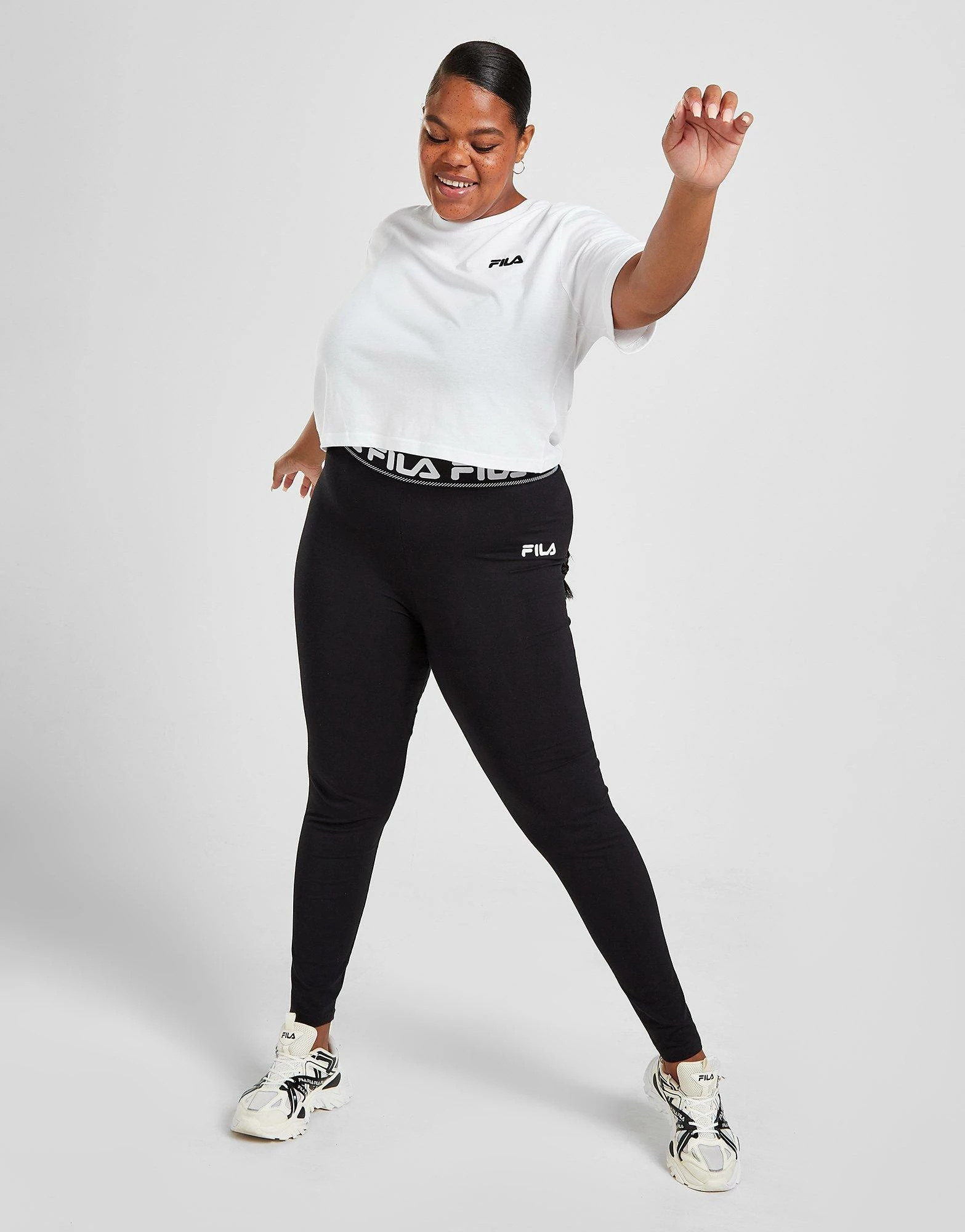 Keep comfy in a retro sportswear-inspired look with these women’s Tape Waist Plus Size Leggings from Fila. Exclusive, these leggings are in a black colourway and cut from smooth cotton for a sleek look and premium comfort. They feature stand-out tape Fila branding at the waist in contrasting white with a thick, wide waistband for a secure and supportive fit. Finished off with the Fila logo to the hip. Machine washable. | Our model 5’8″ and wears a size 18.