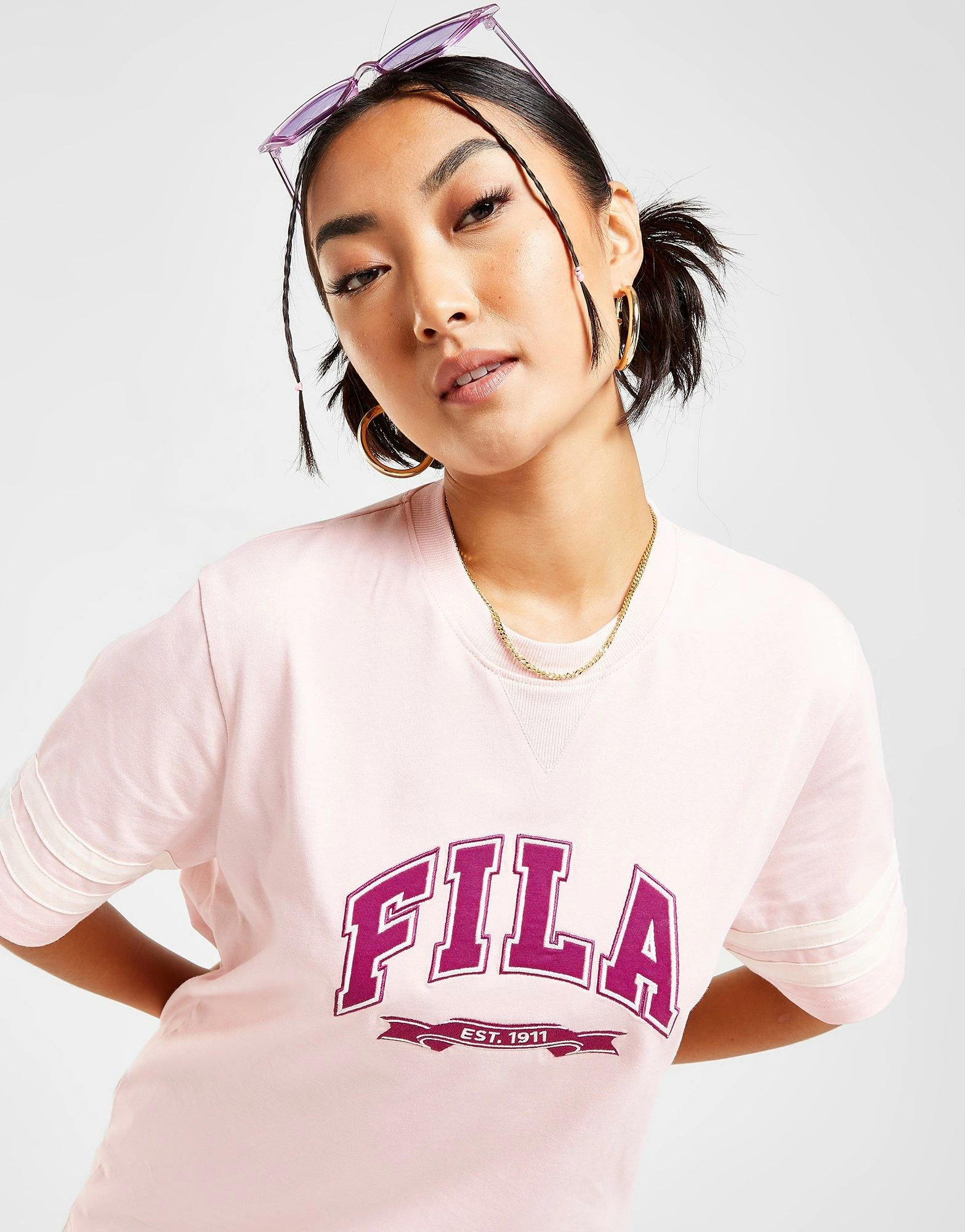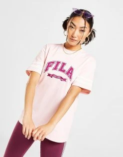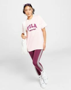 Kick back in old-school style with this women’s Varsity Boyfriend T-Shirt from Fila. In a Pink colourway, this tee is cut from soft, lightweight cotton fabric for everyday comfort. It features short sleeves with a crew neckline and comes in a baggy, oversized fit for laidback vibes. Finished up with signature Fila branding to the chest. Machine washable | Our model is 5’8″ and wears a size 8.
