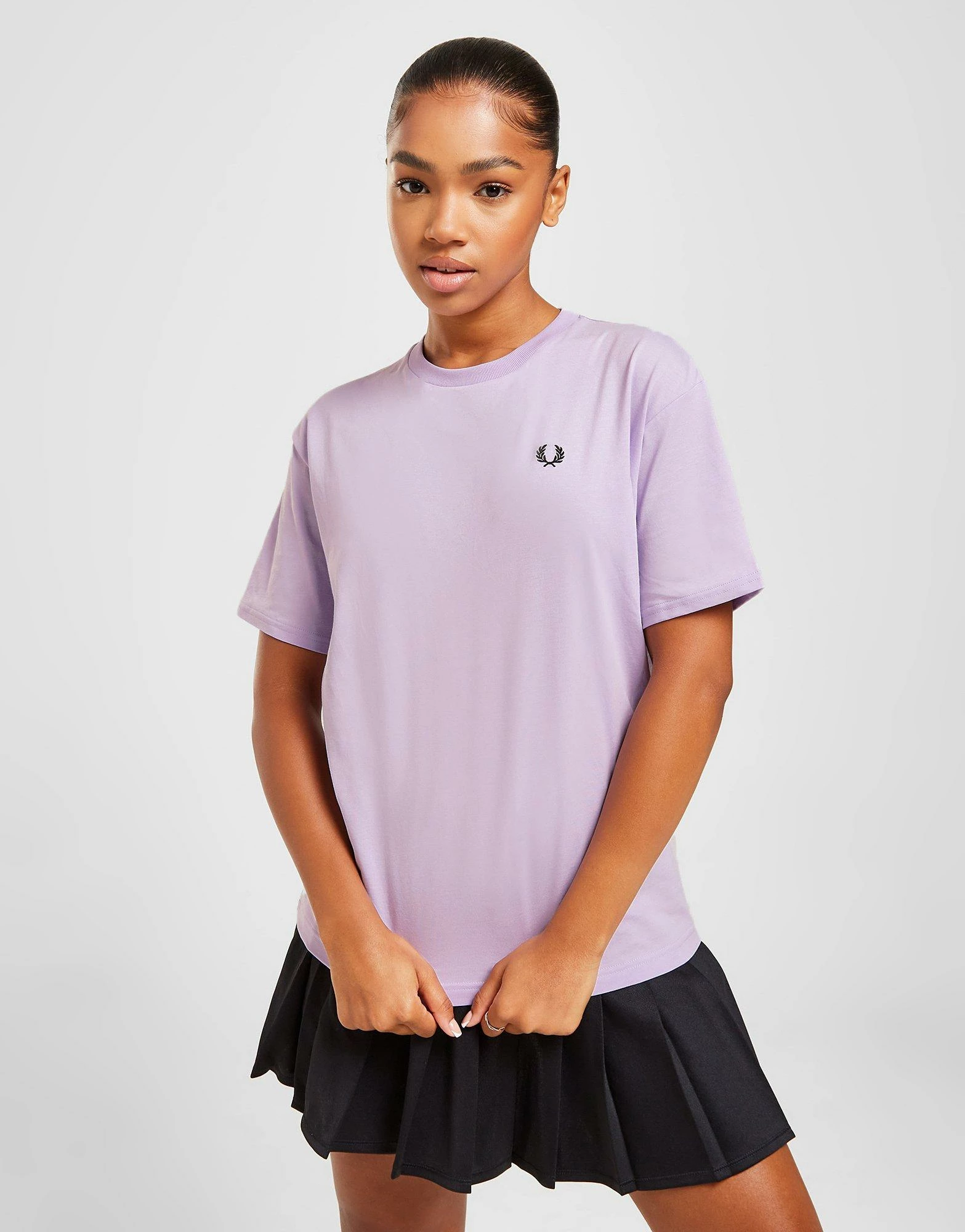 Level up your everyday essentials with this women’s Small Logo Crew T-Shirt from Fred Perry. Landing in a Lilac colourway, this standard-fit tee is cut from premium cotton with a soft, lightweight feel. It features a ribbed crew neckline and short sleeves for a classic look, and is finished up with Fred Perry’s iconic Laurel Wreath logo stitched to the chest. Machine washable. | Our model is 5’7″ and wears a size 8.