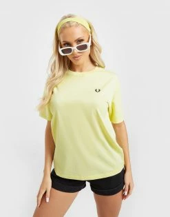 Switch it up for Summer with this women’s Small Logo Ringer T-Shirt from Fred Perry. In a Yellow colourway, this standard-fit tee is made from soft cotton fabric for a laidback feel. It features a classic crew neckline and short sleeves with tonal ringer detailing. Finished with Fred Perry’s iconic Laurel Wreath logo embroidered to the chest. Machine washable. | Our model is 5’5″ and wears a size 8.
