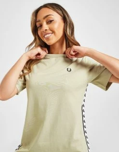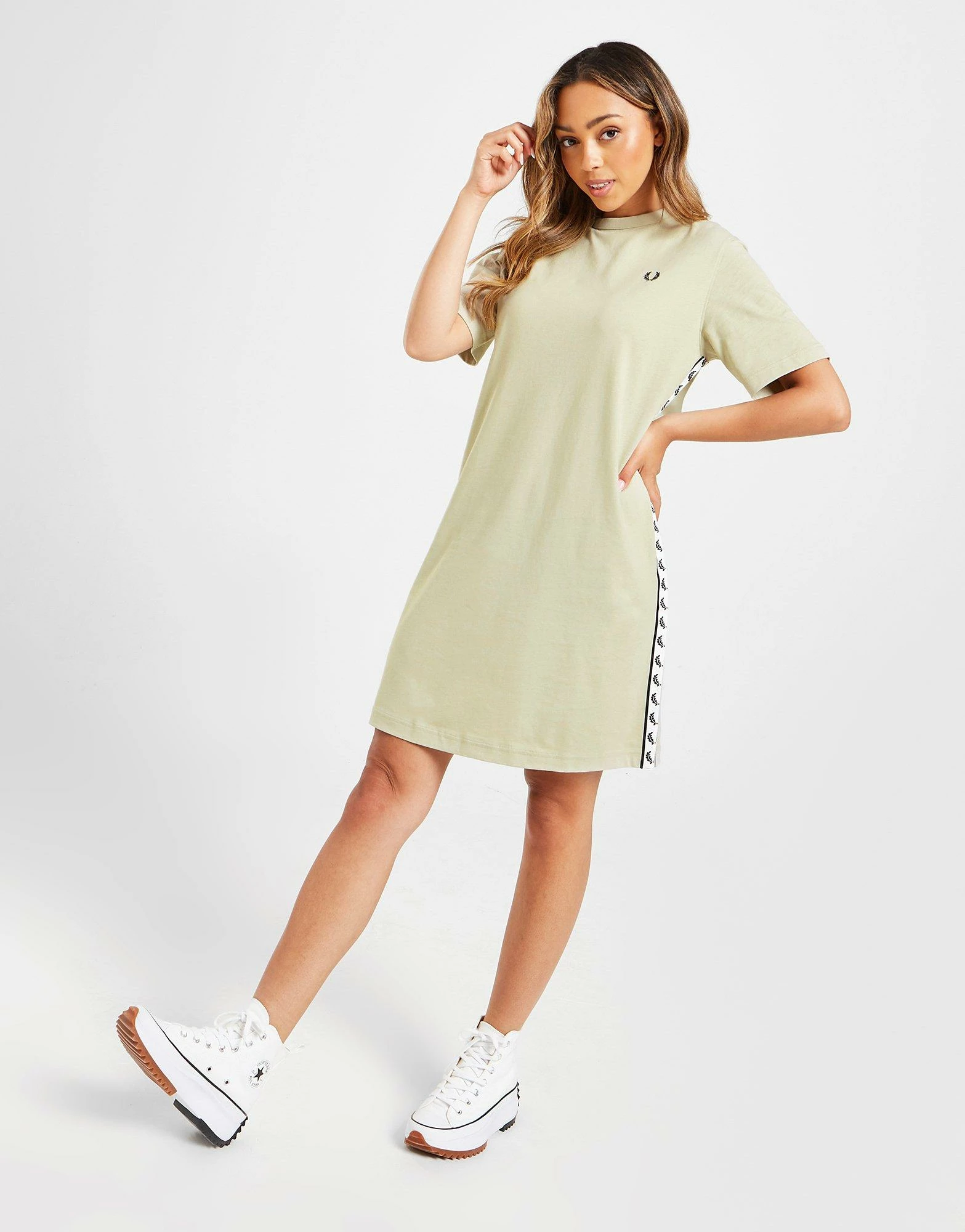 Style up your summer ‘drobe with this women’s Tape T-Shirt Dress from Fred Perry. Inspired by classic sport jerseys, this roomy dress has a ribbed crew neckline, short sleeves, and hits above the knee for comfy coverage. It’s made from super-soft cotton pique fabric for a lightweight, all-day wear. Finished off with retro taping to the sides and a signature Laurel Wreath logo embroidered to the chest. Machine washable. | Our model is 5’8″ and wears a size small.