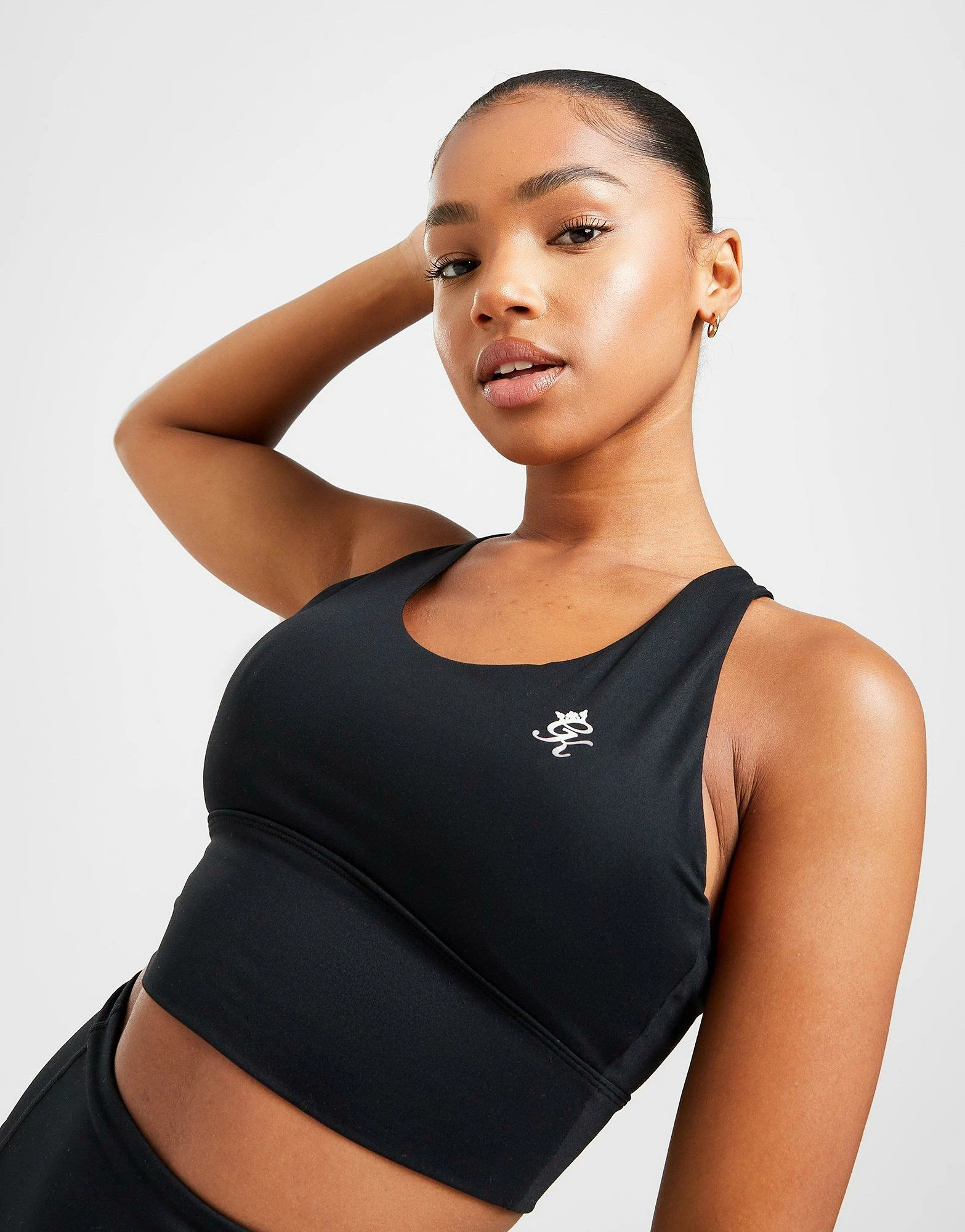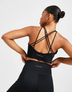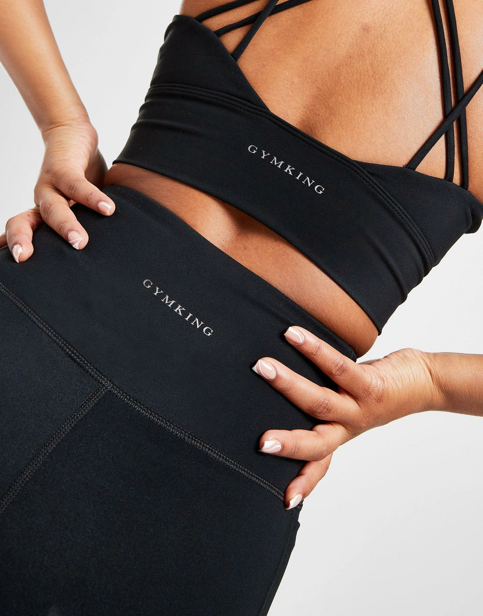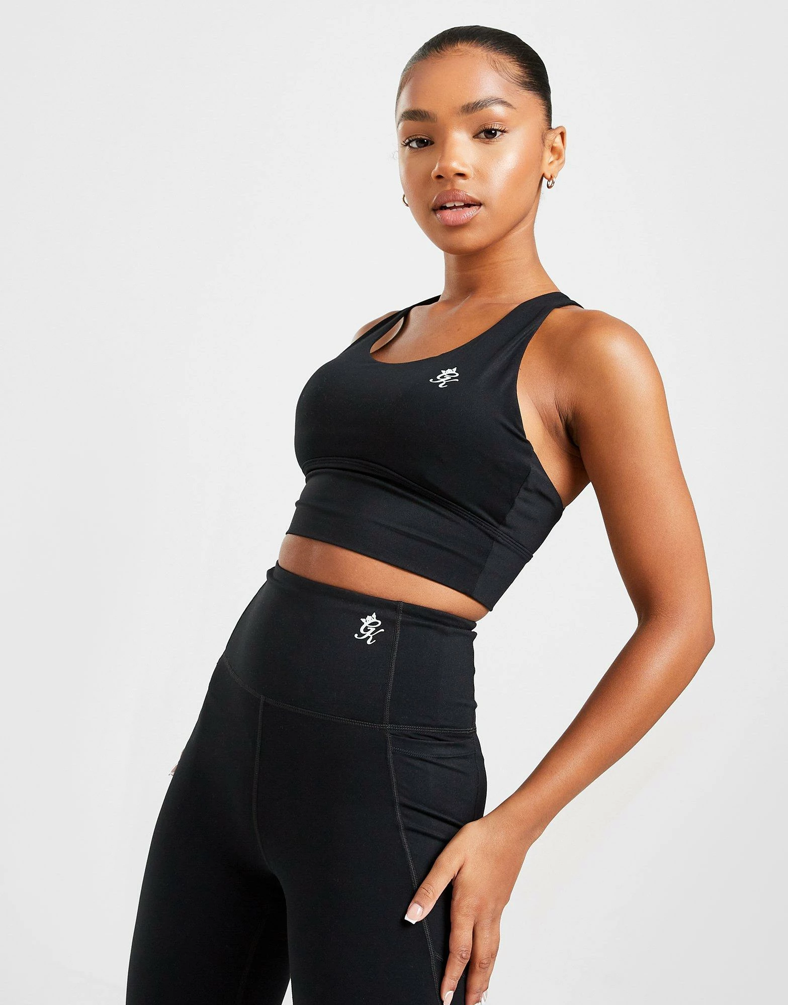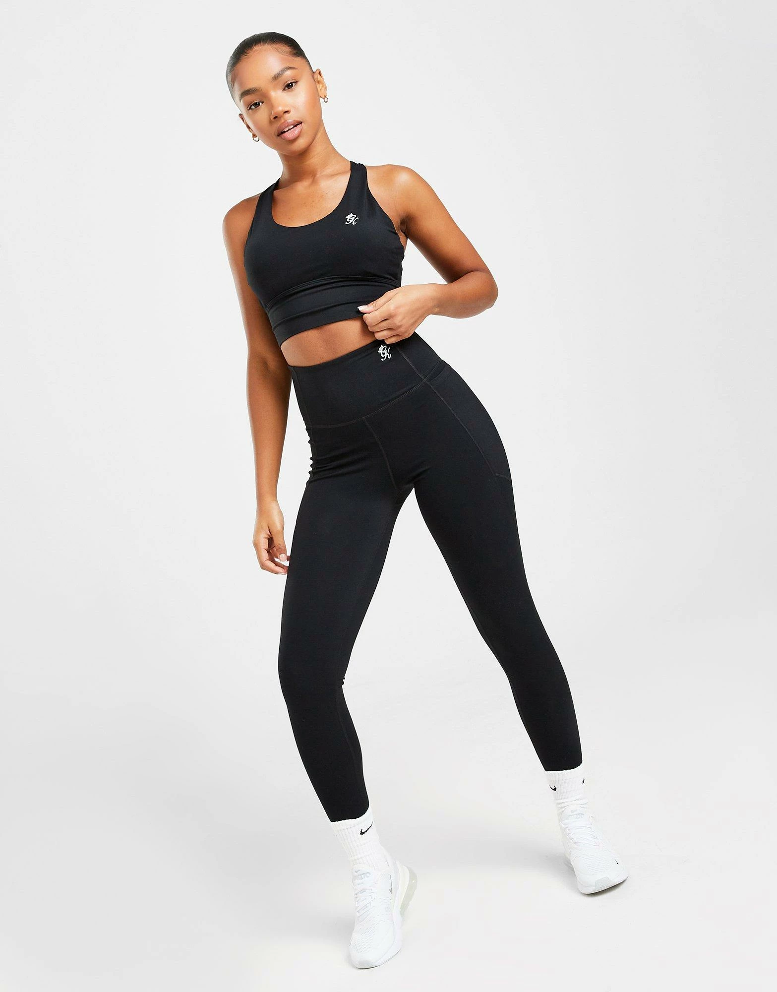 Focus on your goals with this women’s Dominate Sports Bra from Gym King. In a Black colourway, this tight fit sports bra offers medium support and is made from light, stretchy nylon for smooth comfort. It’s equipped with sweat-wicking tech for cool, dry comfort and features cut-out back details for a relaxed wear, with removable padding for a custom fit. Finished up with Gym King branding to the chest. Machine washable. | Our model is 5’7″ and wears a size small.
