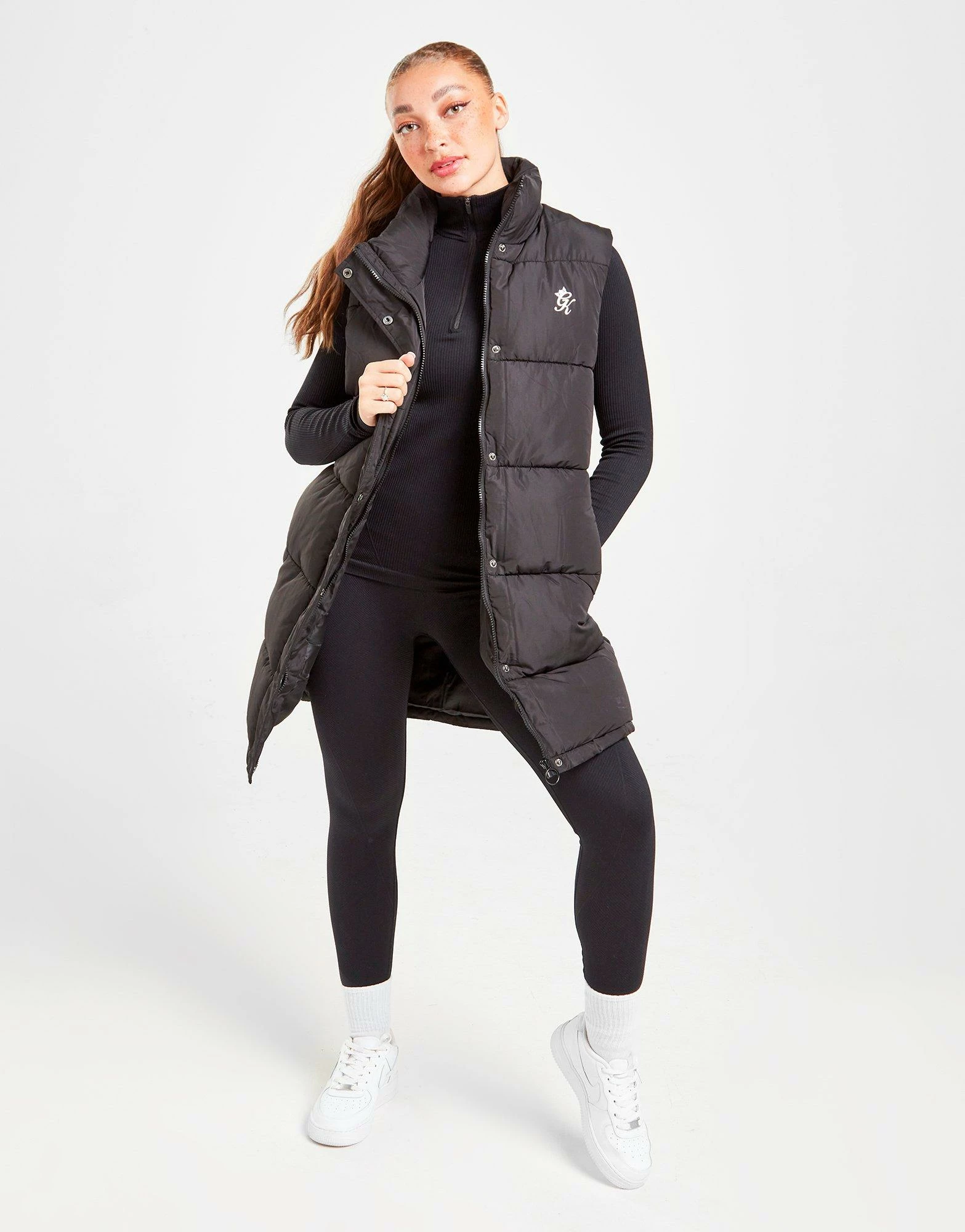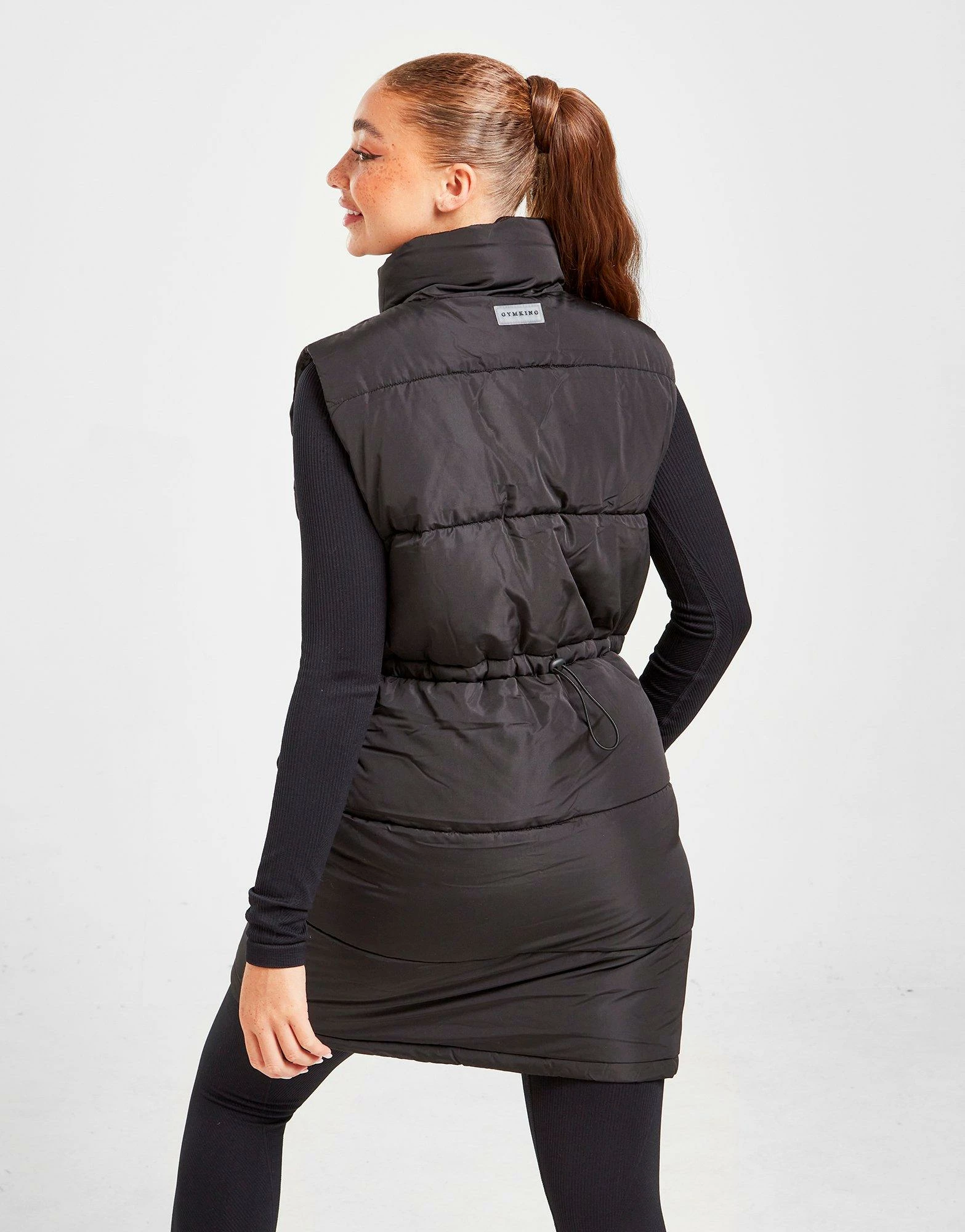 Stay cosy in the cold with this women’s Longline Gilet from Gym King. In a Black colourway, this gilet is cut from light, durable poly fabric with synthetic padding for snug comfort. It features a full-zip fastening and funnel-neck collar for custom coverage, with a bungee-cord to the back for an adjustable fit. It has side pockets for your essentials and is finished up with Gym King branding to the chest. | Our model is 5’7.5″ and wears a size 5’7.5″.